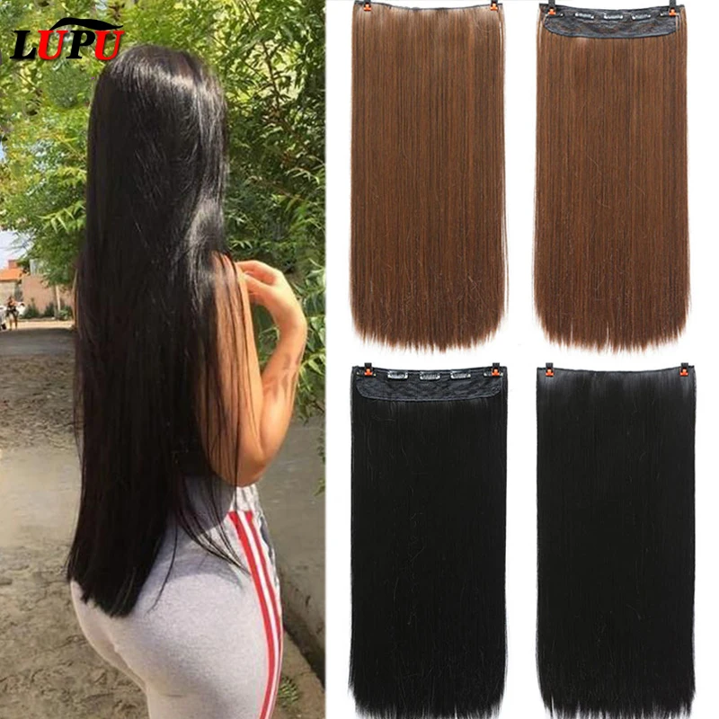 Искусственные волосы LUPU, длинные прямые, синтетические, на 5 заколках, для удлинения волос, синтетическое высокотемпературное волокно для женщин