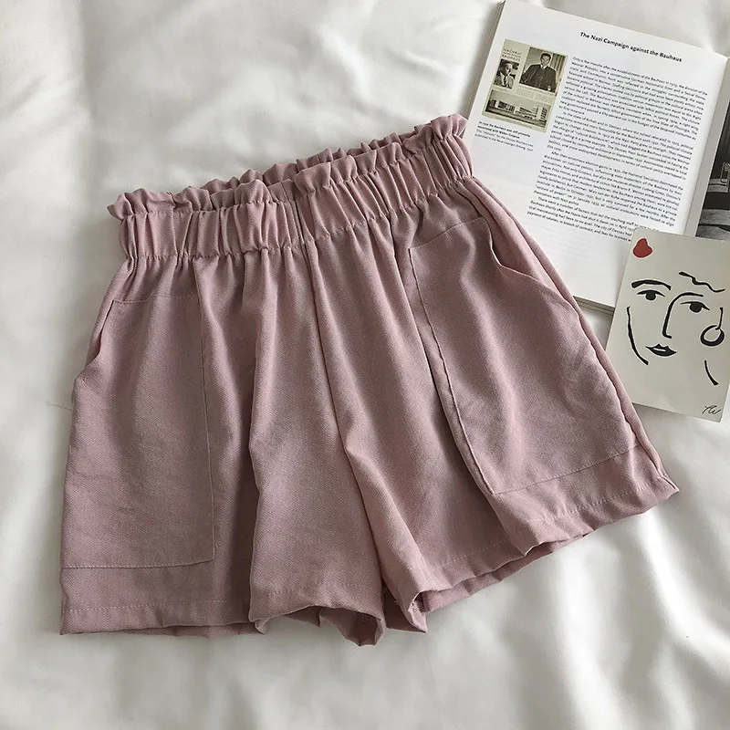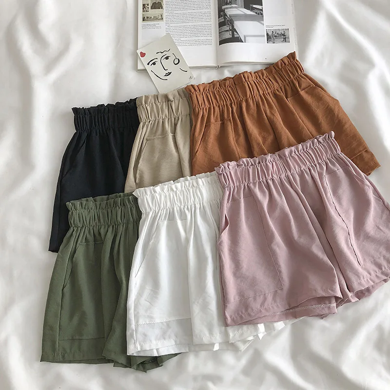 Шорты женские повседневные однотонные, студенческие модные короткие штаны в Корейском стиле, с большими карманами, с эластичной завышенной талией, лето 2020