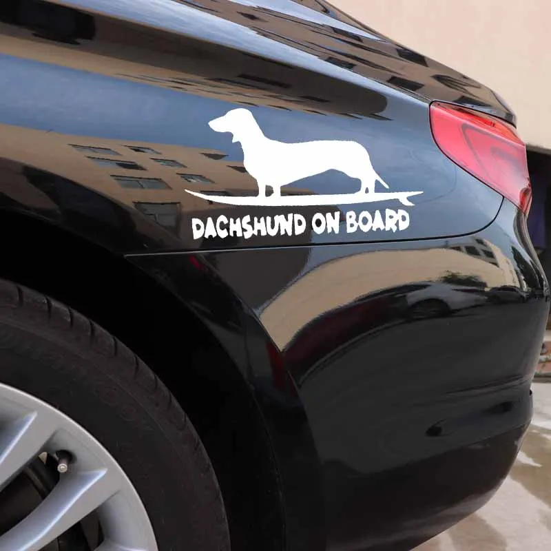 Забавная такса на доске, наклейка на автомобиль, автомобили, мотоциклы, внешние аксессуары, виниловые наклейки для Bmw, Audi, Ford, Lada