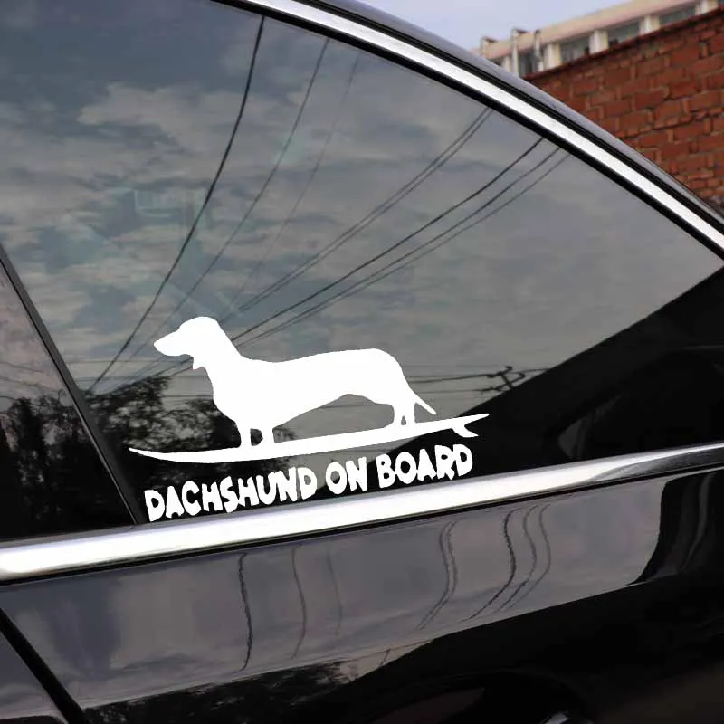 Забавный стикер на машину с собакой Декор окна такса на доске виниловая наклейка,16cmX8.8cm