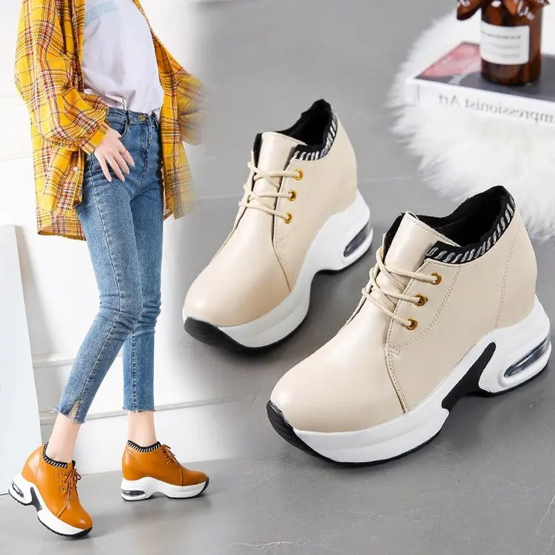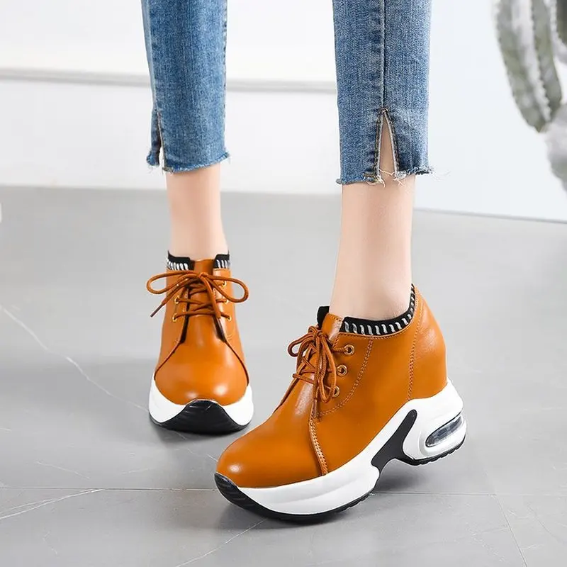 Fujinженские кожаные кроссовки на платформе; Обувь на массивной тан...