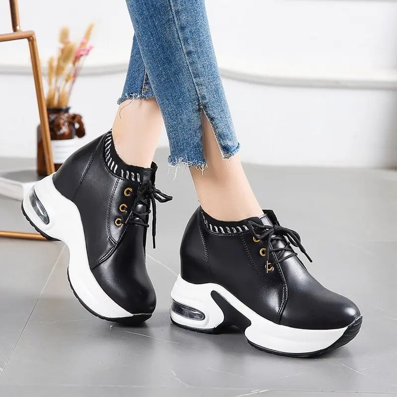 Кроссовки на платформе, черные, на скрытой танкетке, для бега, весе...