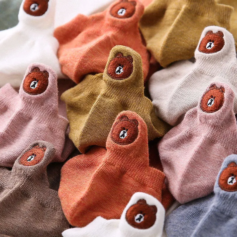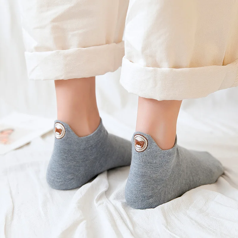 Женские короткие разноцветные носки с вышивкой в виде собаки