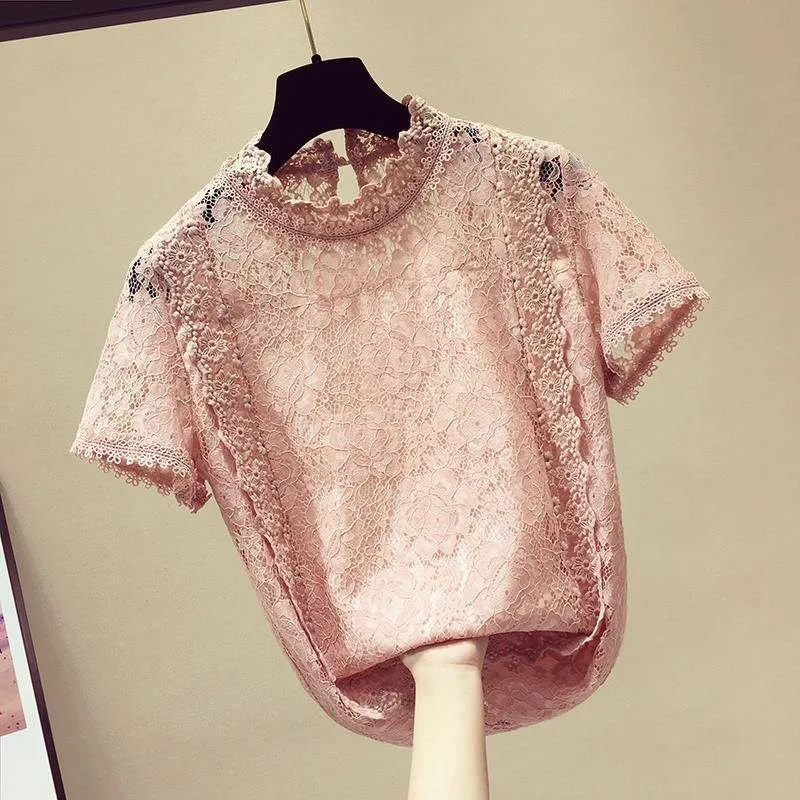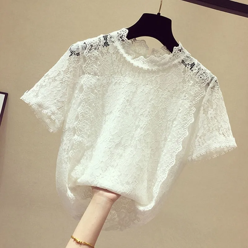 Женская кружевная рубашка с коротким рукавом и круглым вырезом