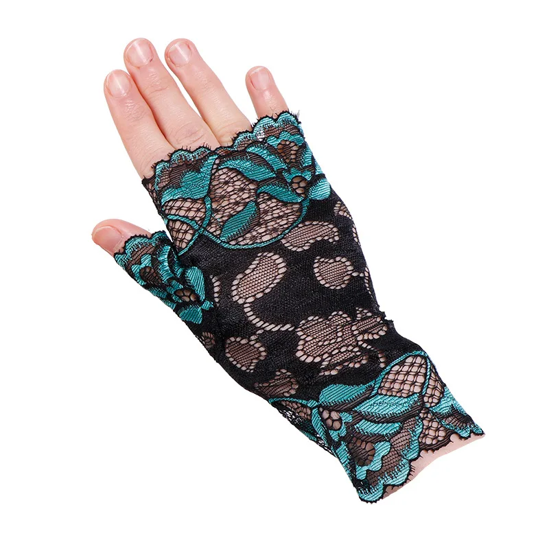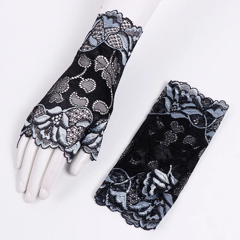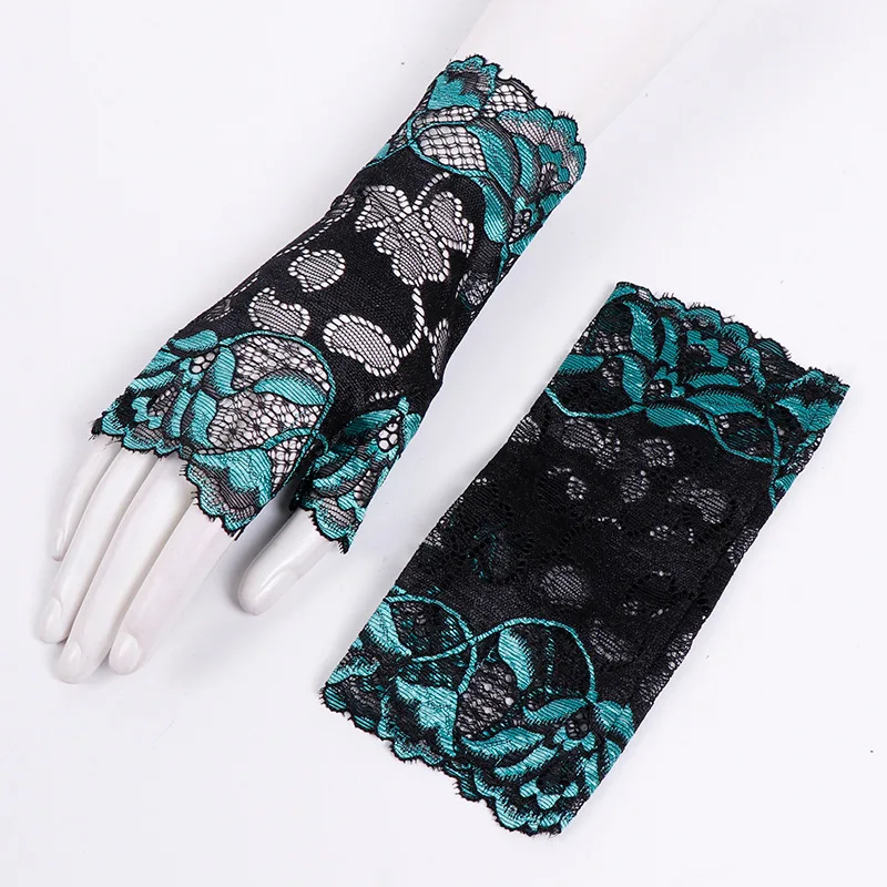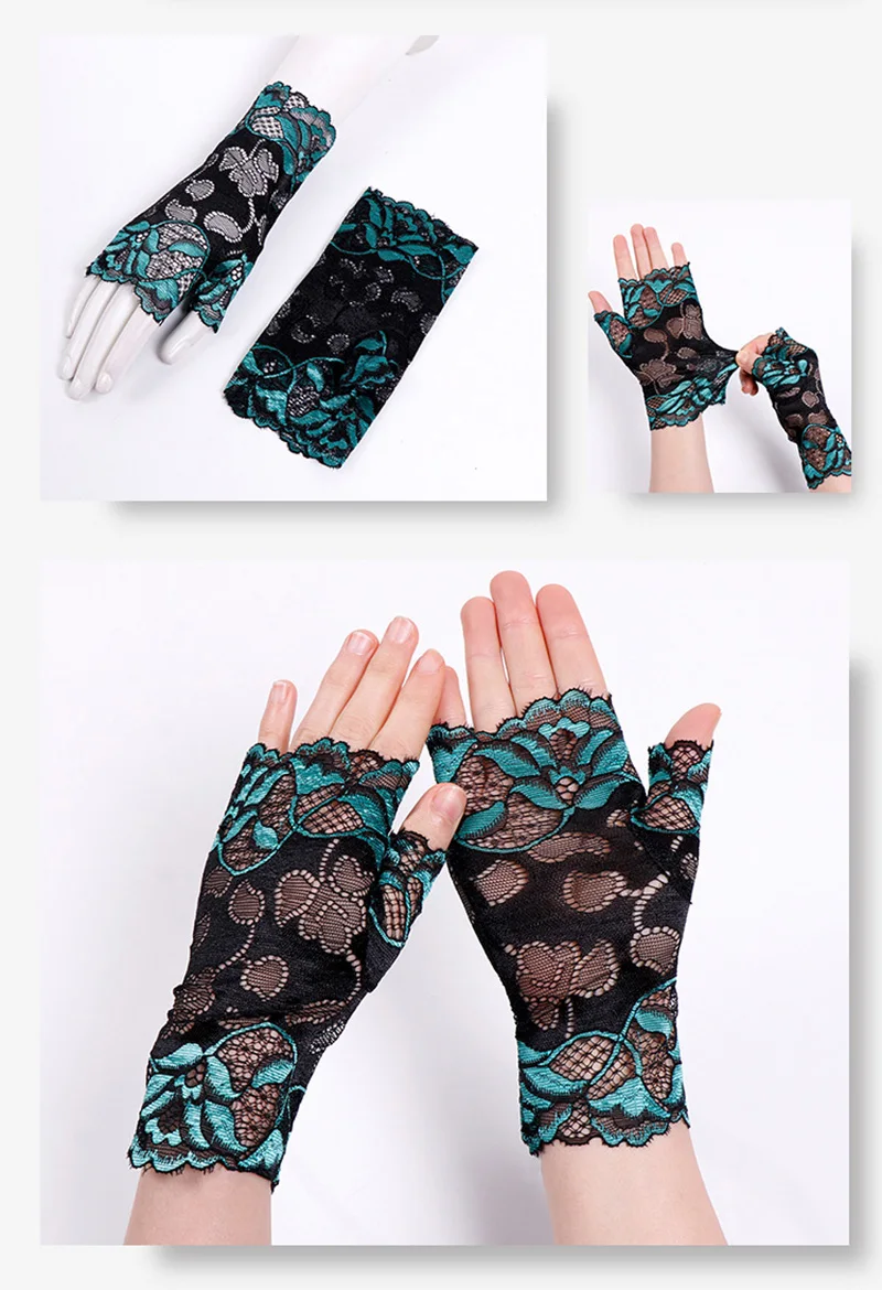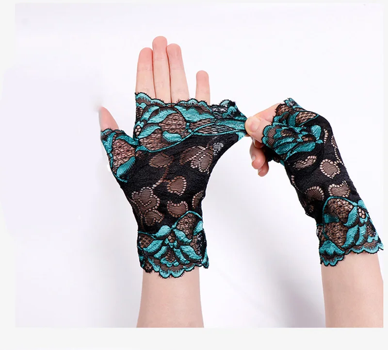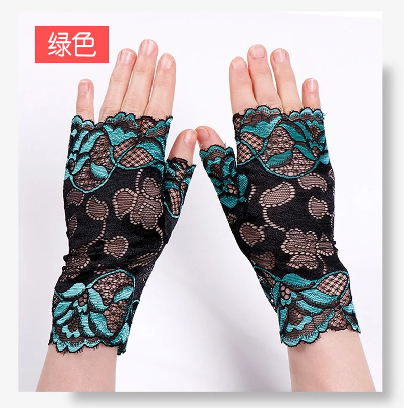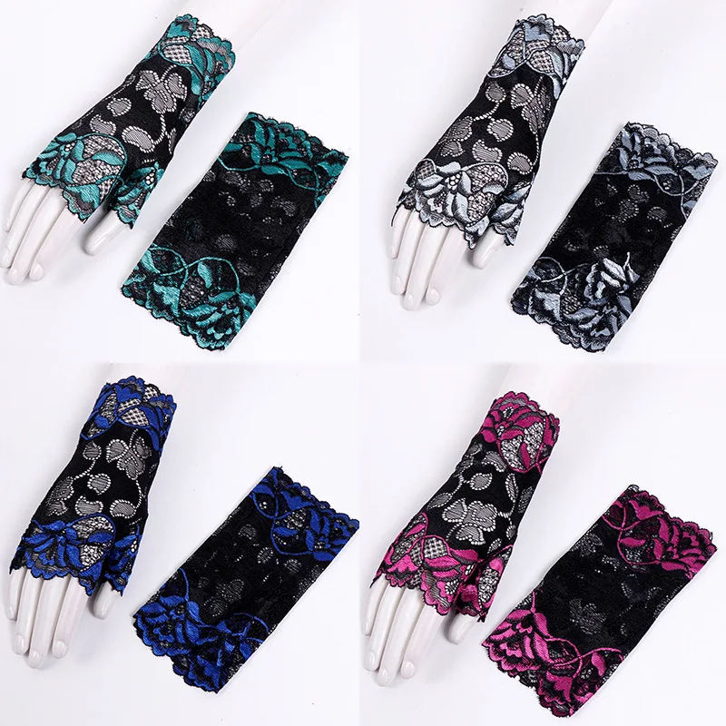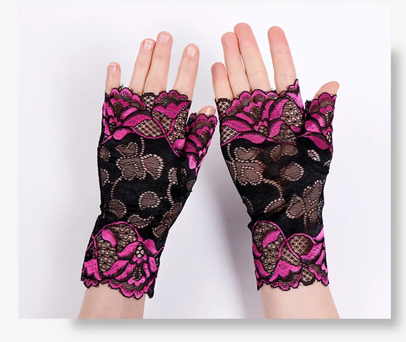 Пикантные летние женские солнцезащитные короткие кружевные перчатки с открытыми пальцами Женские водительские перчатки без пальцев с цветочным принтом роз яркие солнцезащитные перчатки