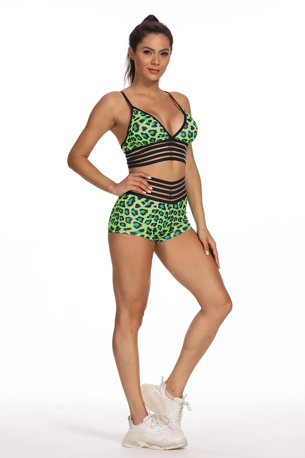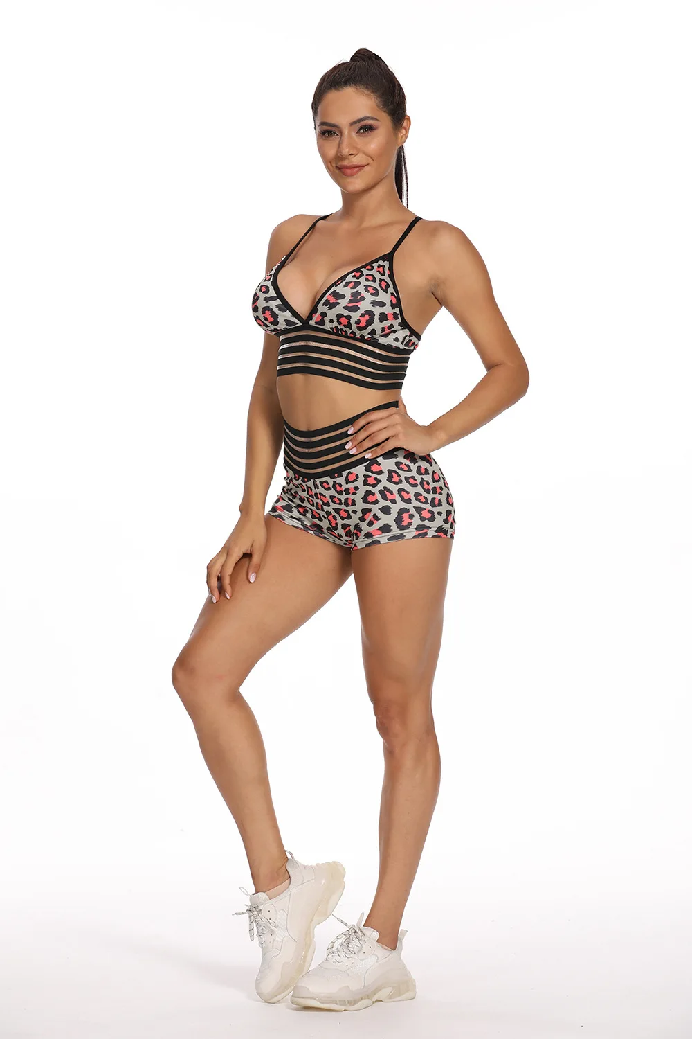 Спортивный женский костюм для йоги, леопардовые леггинсы, комплект для йоги, топ, бюстгальтер + шорты, штаны, спортивные шорты, тренажерный зал, обтягивающие, 2 шт.