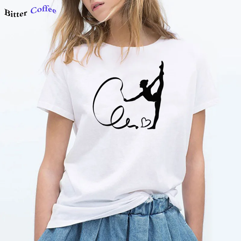 Женские новые модные футболки с принтом гимнастов, женские хлопковые белые и черные футболки и топы, Женская Повседневная футболка в стиле High Street, 2020