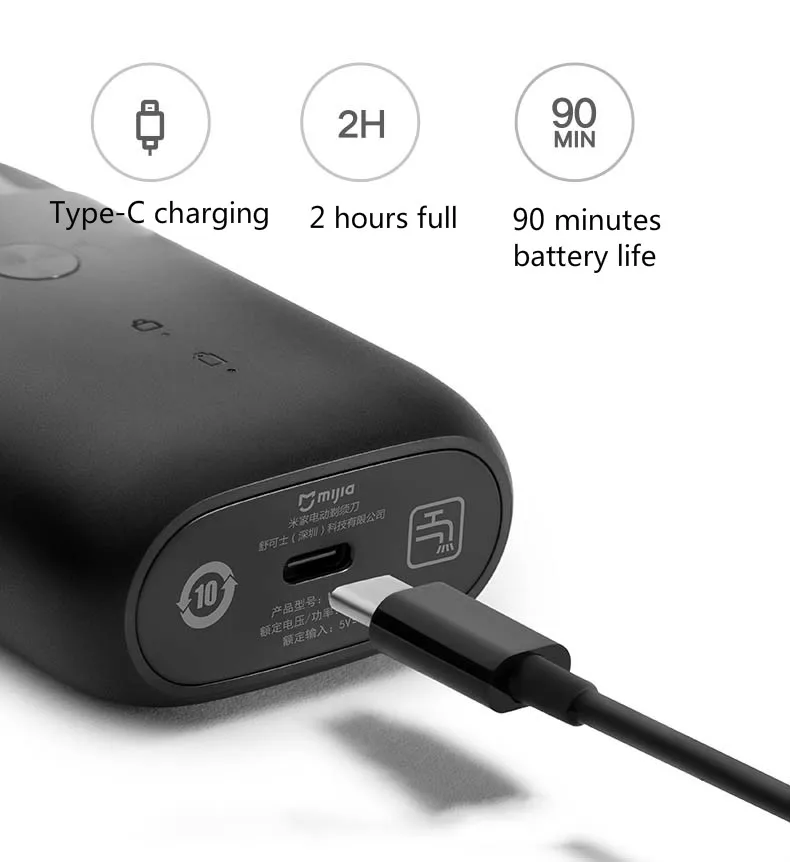 Он не только имеет длительный срок службы батареи, но также оснащен универсальным интерфейсом Type-C, что делает зарядку очень удобной. Когда Бритва имеет недостаточную мощность и не может быть включена, зарядите ее в течение 5 минут и используйте ее как минимум один раз. * Полная зарядка занимает около 2 часов и используется для около 90 минут. В соответствии с 1 минутой ежедневного использования, безопасно использовать в течение 3 месяцев.