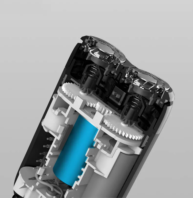 Гибкая бритва, легко справляется со сложными контурами лица. Головка лезвия плавает внутрь, образуя форму «V», которая может легко справиться с выступающими частями лица, такими как подбородок и челюсть; Плавает наружу, образуя «Восемь» формы, эффективно бритье углов, таких как углы рта и заушники.