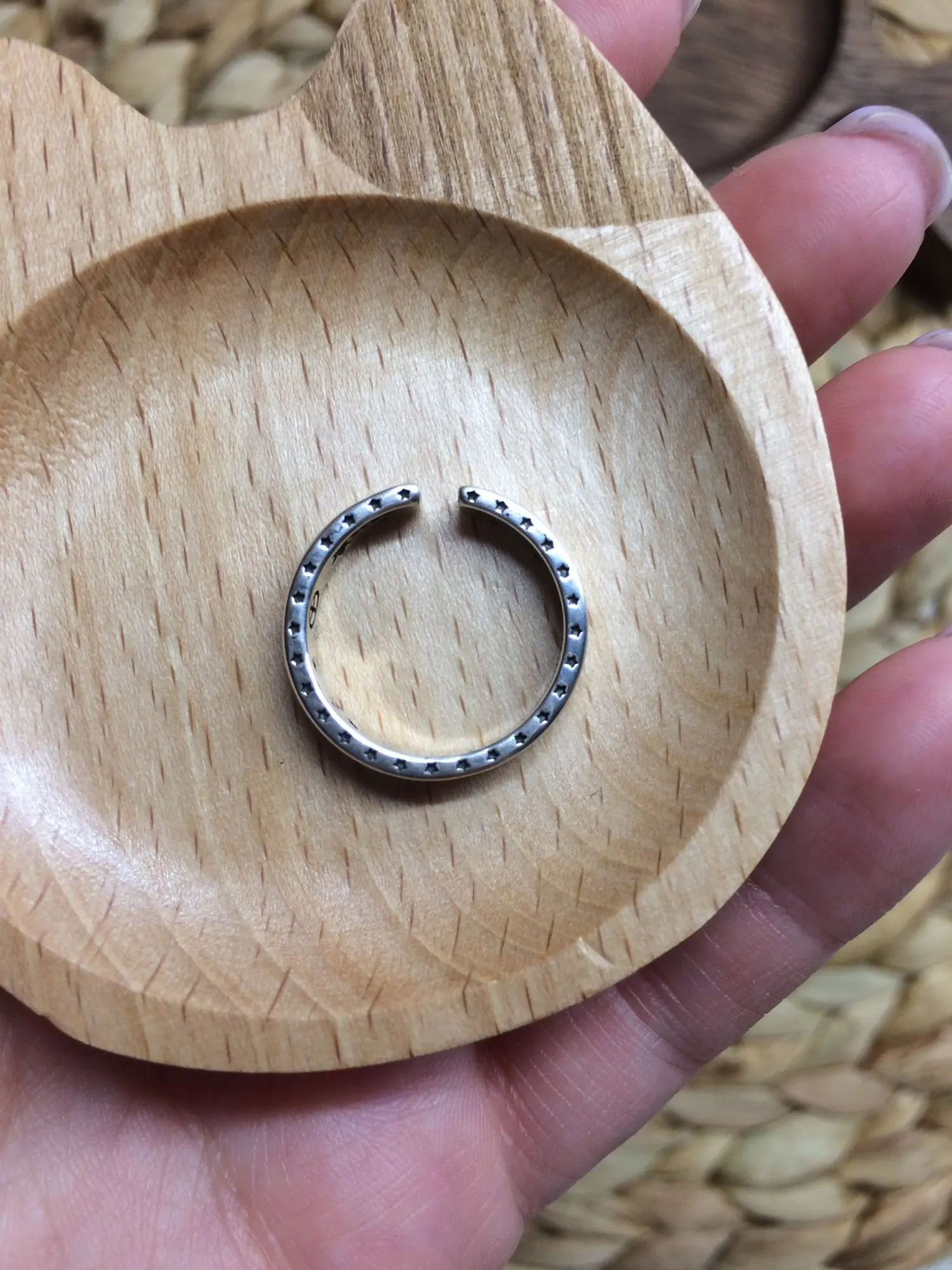 Very cute ring, exactly as seen in the photo. It fits my finger well.