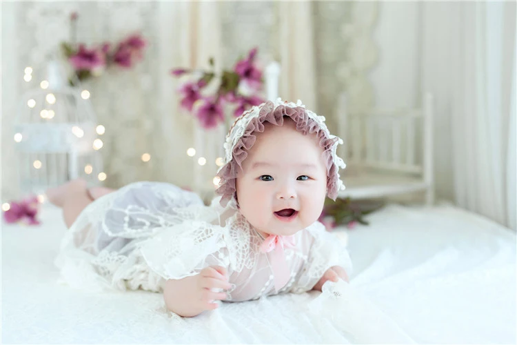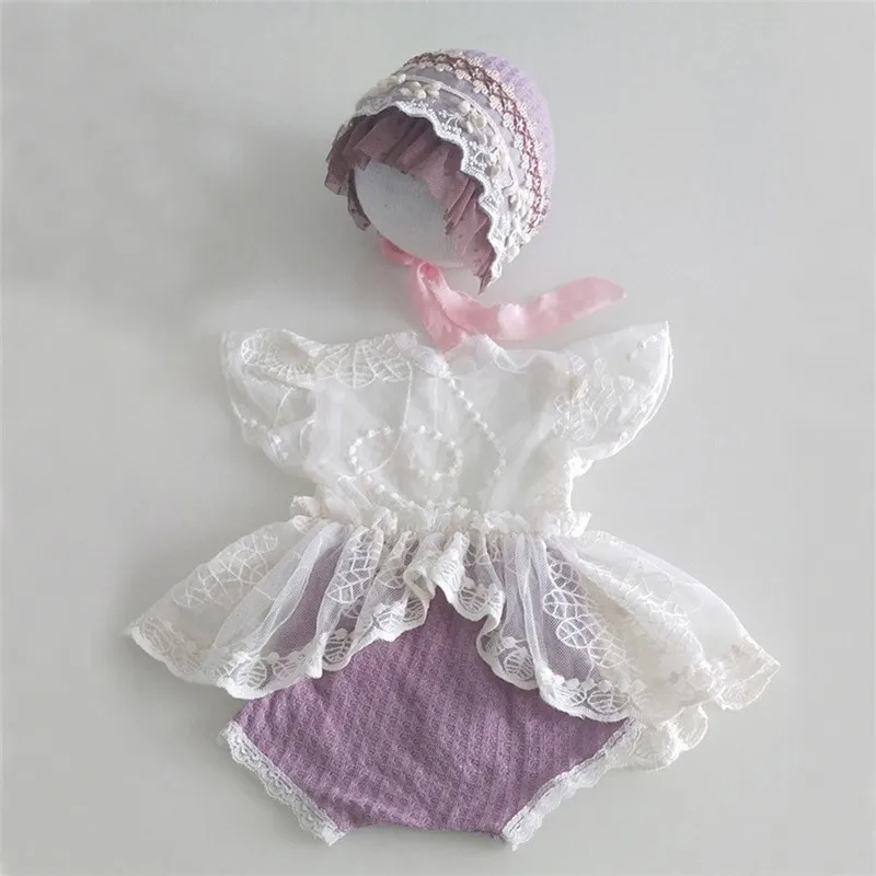 Боди с шапочкой и кружевом для новорожденных девочек