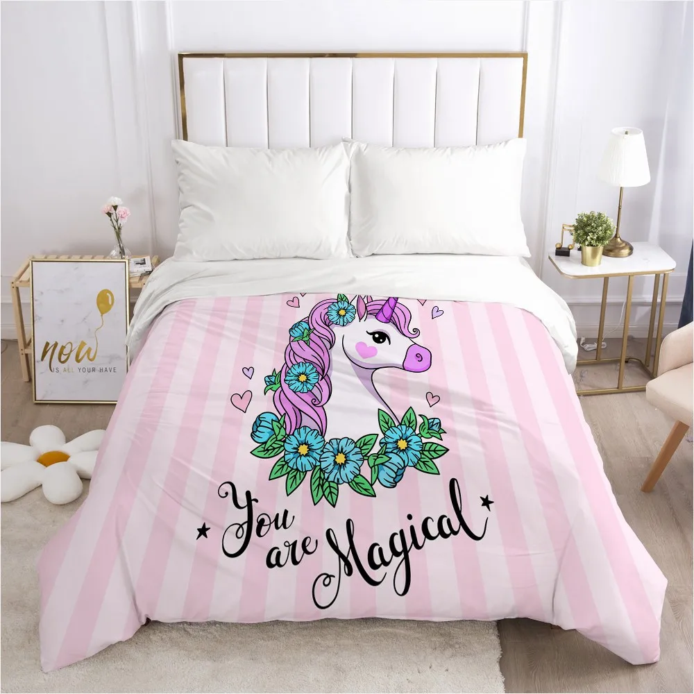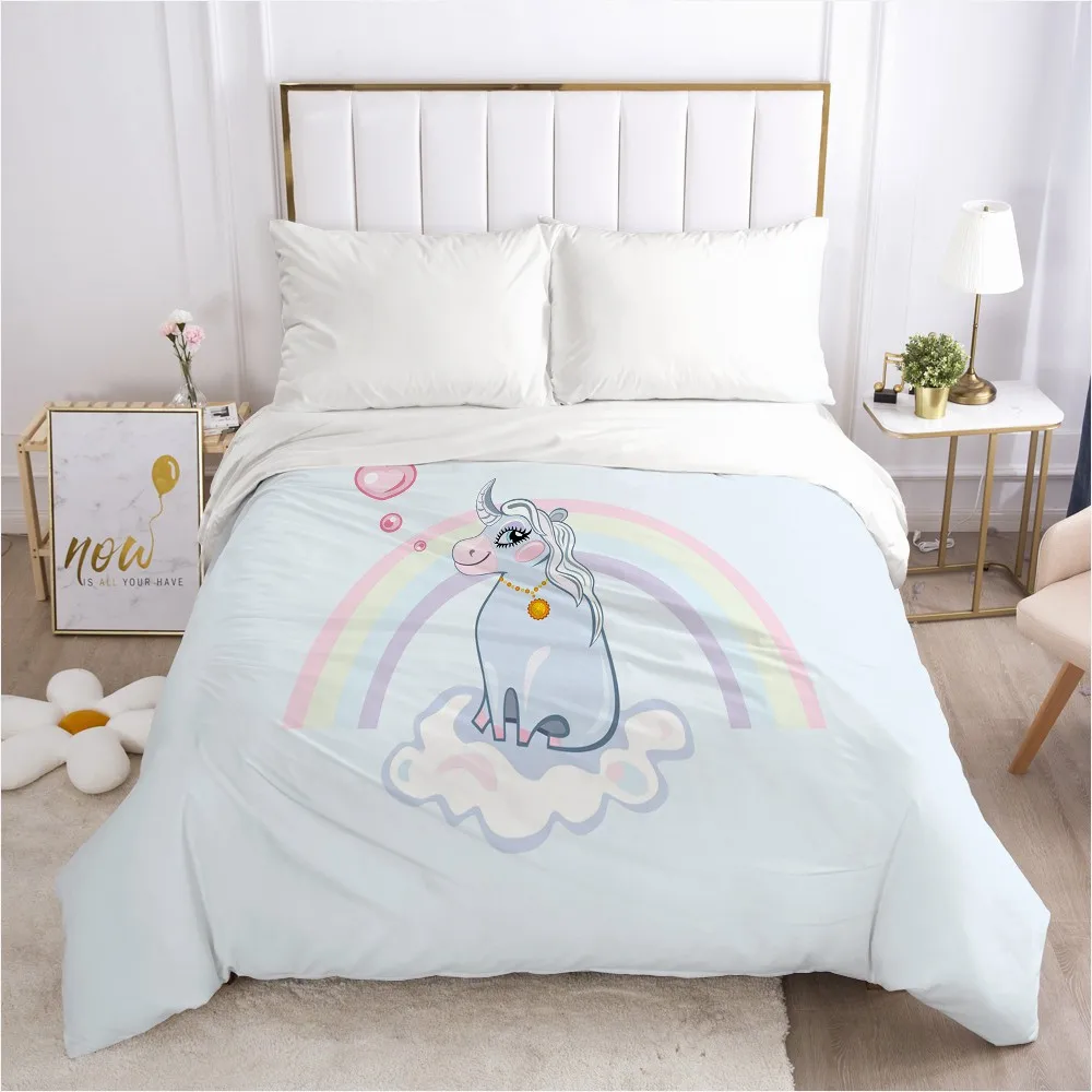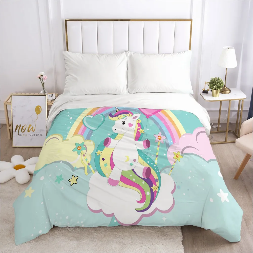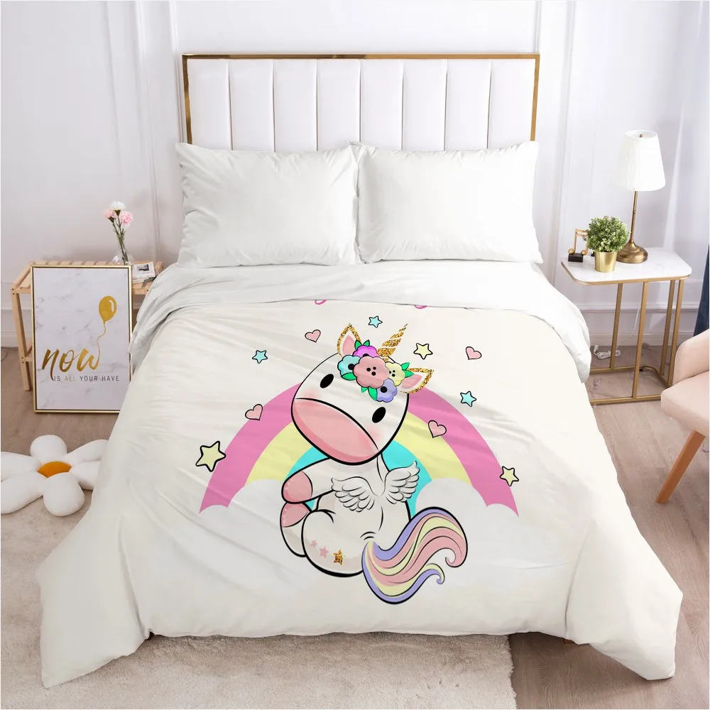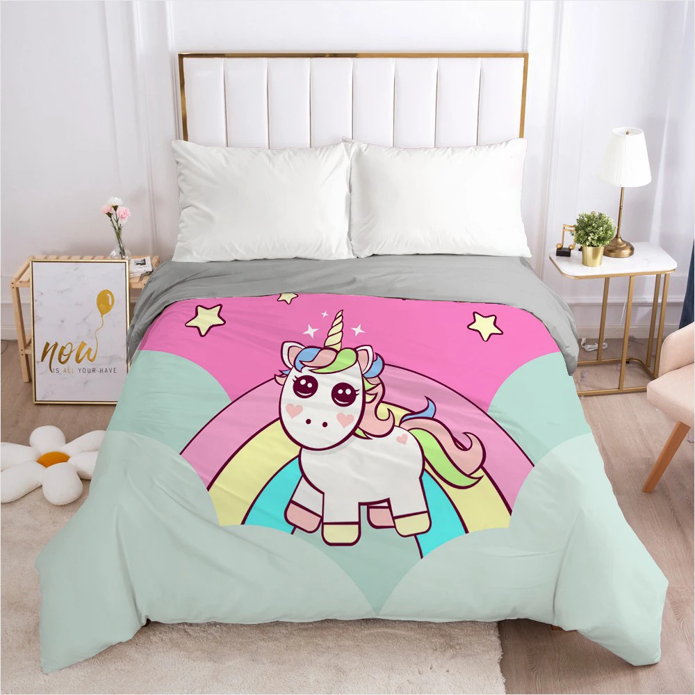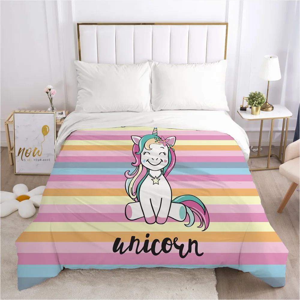 Пододеяльник с мультяшным единорогом, покрывало на молнииодеяло, чехол 180x210 200x200, постельное белье 3D для детей, малышей, девочек, мальчиков
