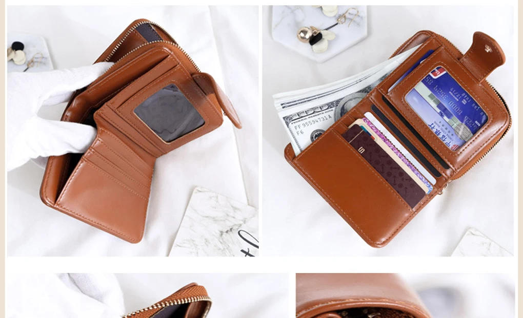Модный женский короткий кошелек, Женский кошелек на молнии из искус...