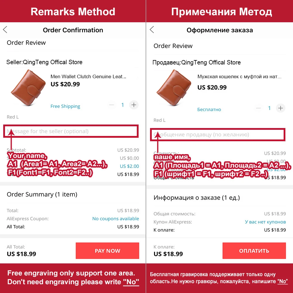 2. Пожалуйста, оставьте сообщение в заказе, что вы хотите гравировать. Или мы будем делать гравировку по умолчанию области и шрифт.