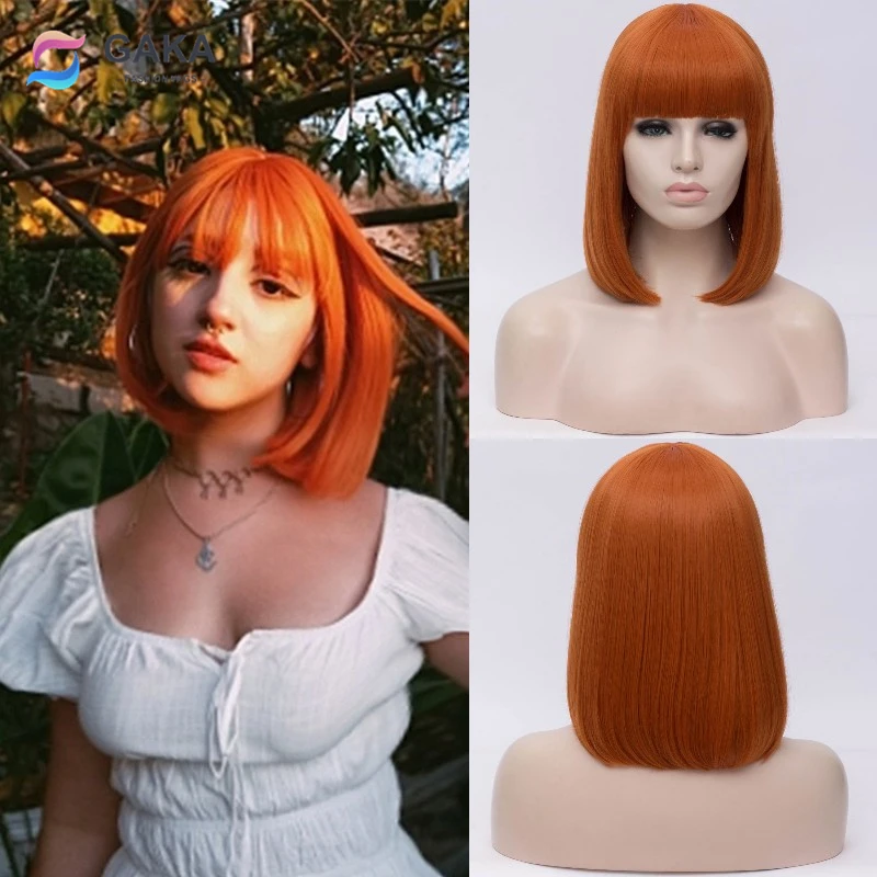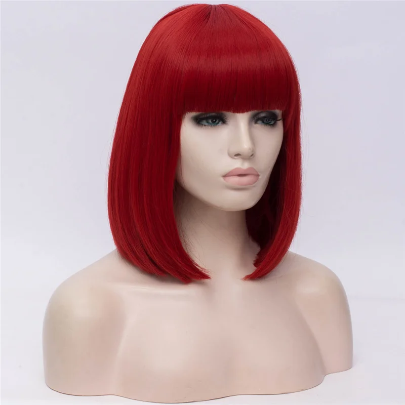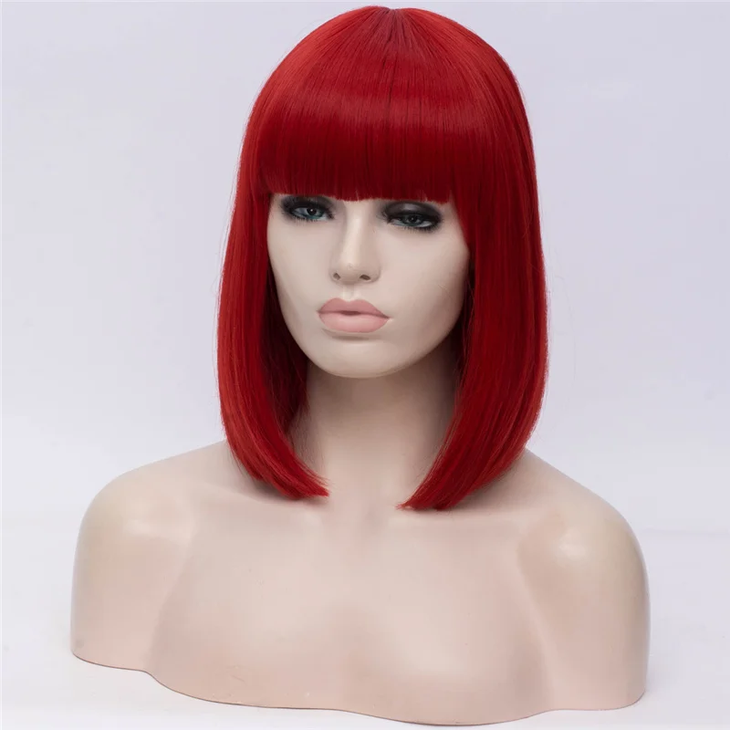 GAKA короткий боб парик белые синтетические волосы красные женские косплей прямые парики с челкой
