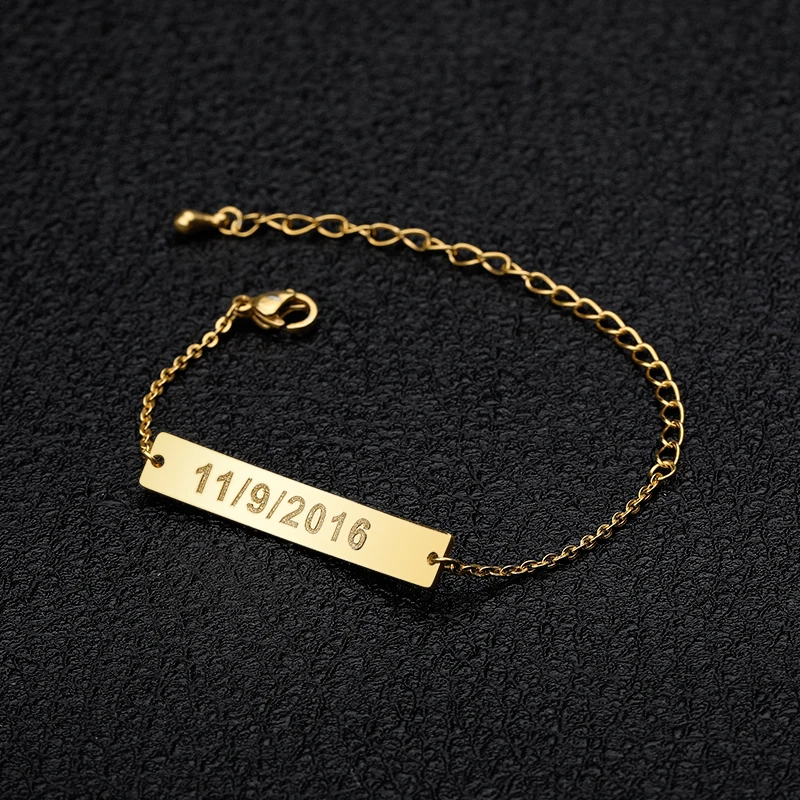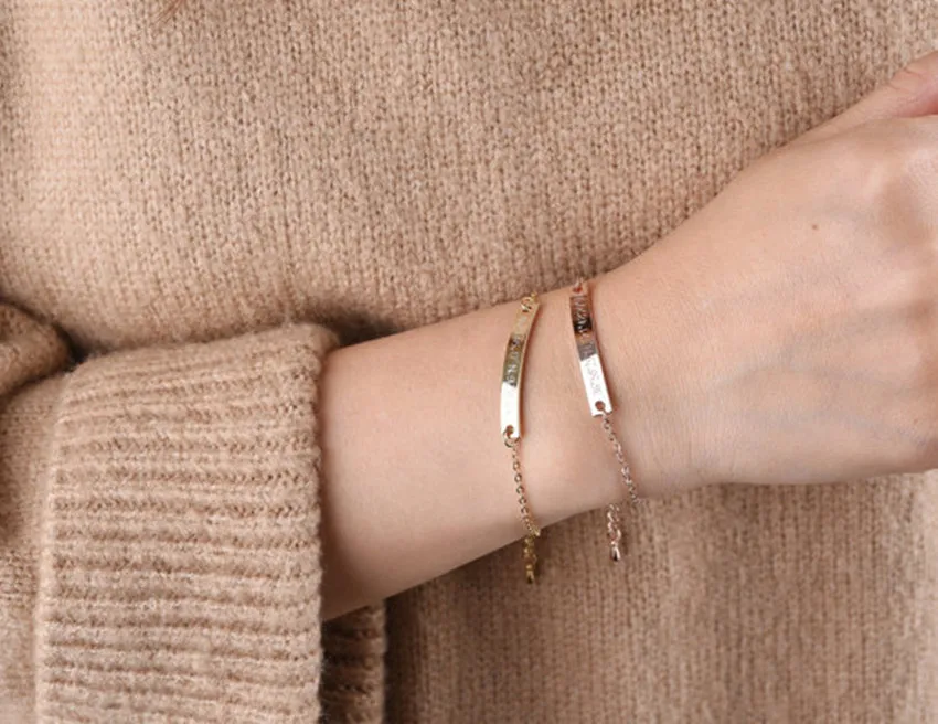 30*8 мм персонализированный браслет с гравировкой имени, детский золотой браслет с гравировкой координат, ювелирные изделия для девочек и мальчиков, подарок на день рождения BFF
