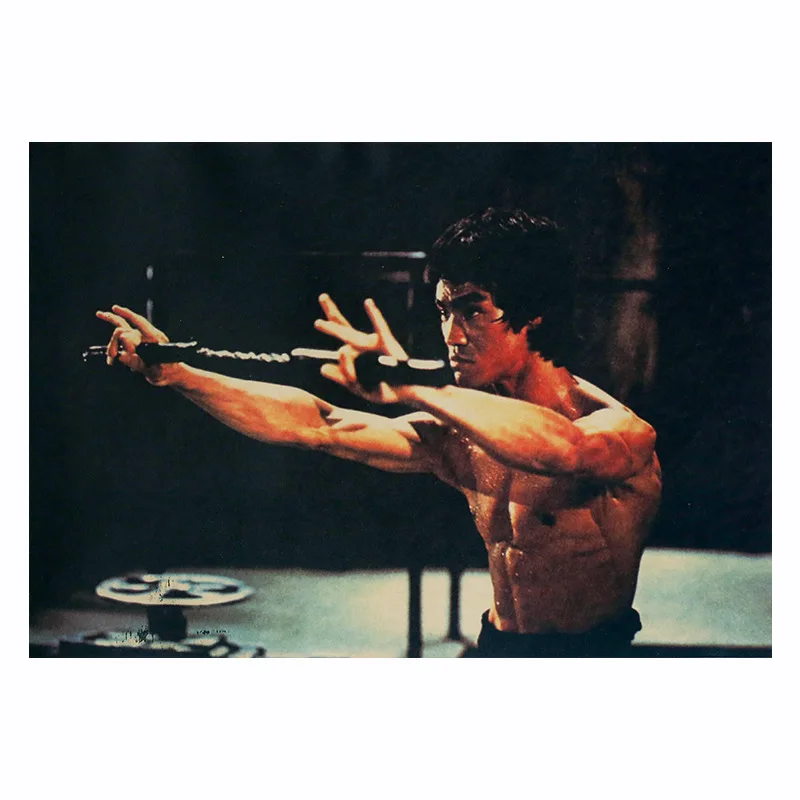Китайская звезда кунг-фу, ретро постер Брюса Ли, наклейки на стену из крафт-бумаги, украшение для кафе, картина, украшение для комнаты