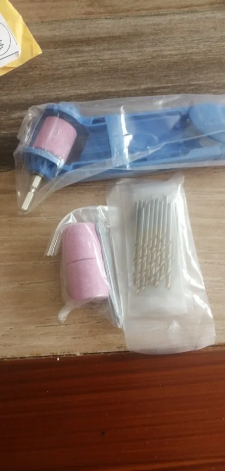 товар пришел в комплектности как описании полностью затупленное сверло заточить трудно но подправить сверло можно трудновато держать и одновременно проворачивать сверло