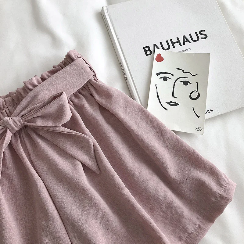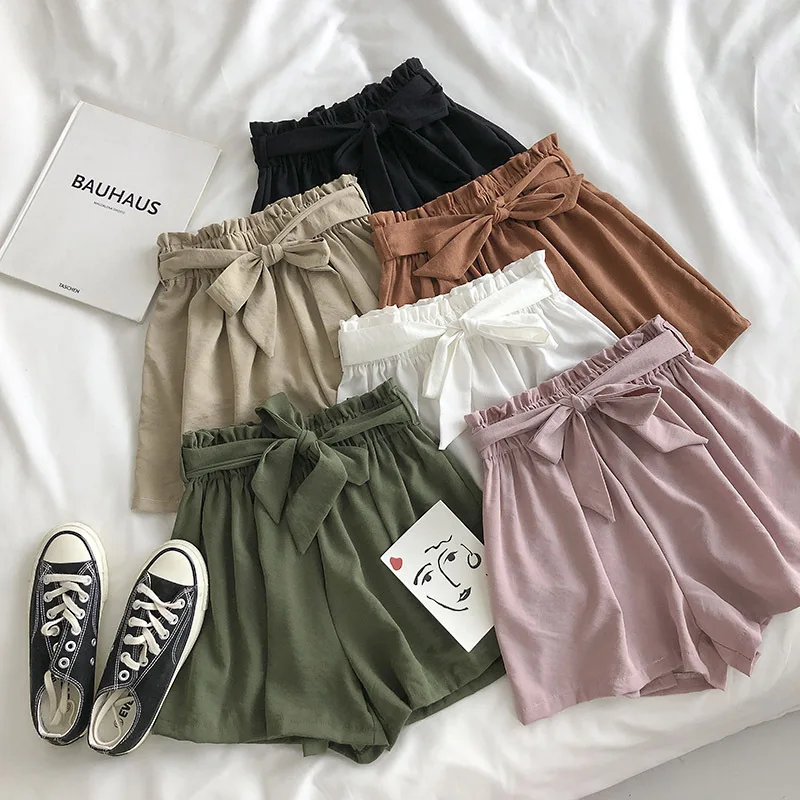 Шорты женские однотонные на шнуровке, Модные свободные повседневные с эластичным завышенным поясом, с широкими штанинами в Корейском стиле, белые, лето 2020