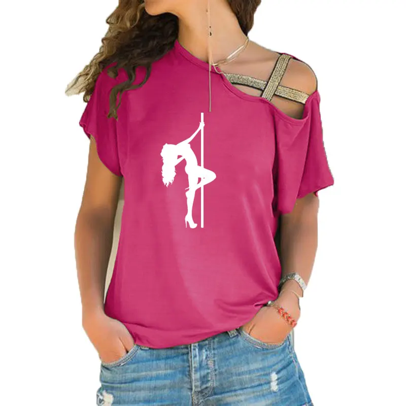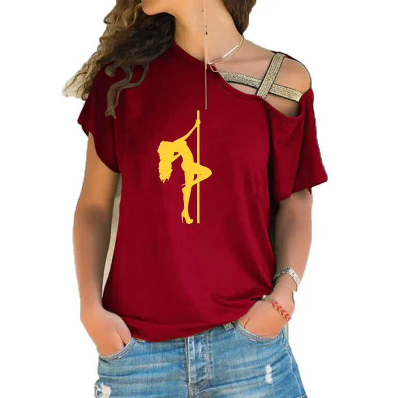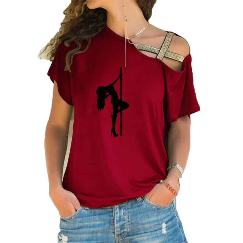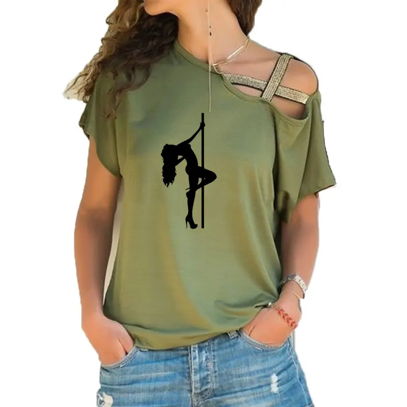 Женская футболка с рисунком танцующей шеста, женская модная новая футболка с коротким рукавом для девушек, необычная бандажная футболка с косым перекрестным узором, топы