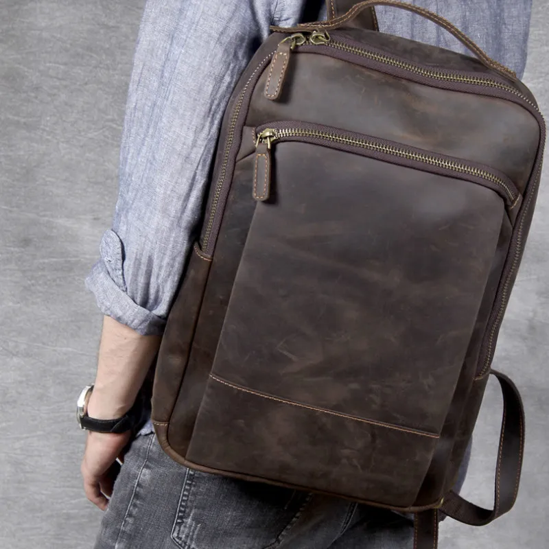Винтаж кожаная верхняя Слои кожаная сумка из коровьей кожи, ручной работы голова кожаный рюкзак из воловьей кожи Для мужчин, сумка для ноутбука