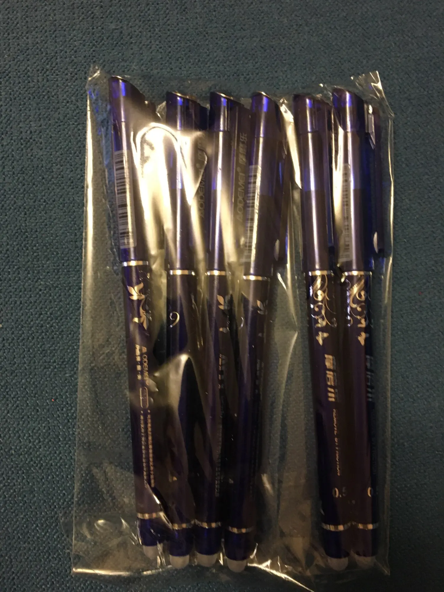 пишут красивым фиолетовым цветом, 2 ластика, которые их стирают в комплекте. Очень давольны