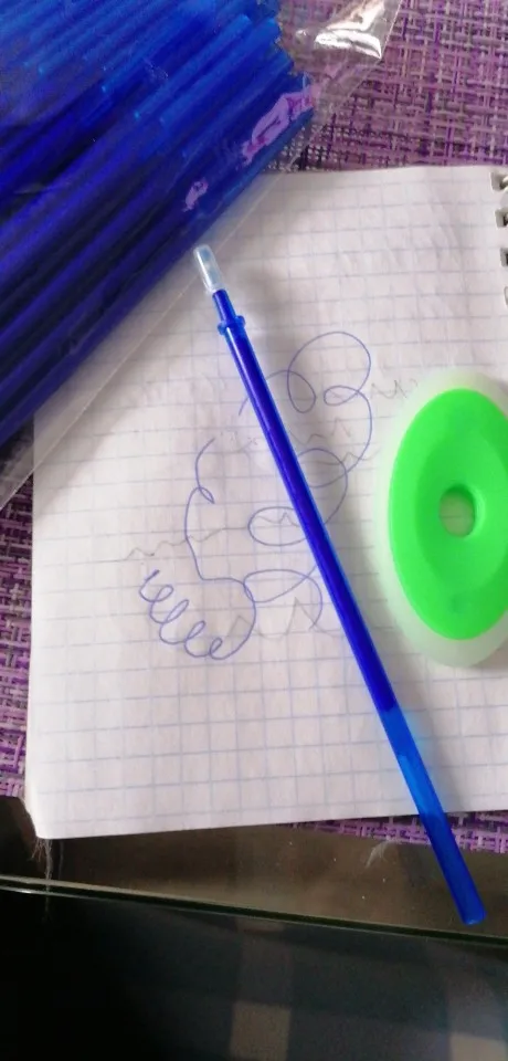 Нам очень нравятся эти стирающиеся стержни, вставляем в простые ручки. Жаль только, что в школу их носить не разрешают. Но дети их любят и носят тайно)
