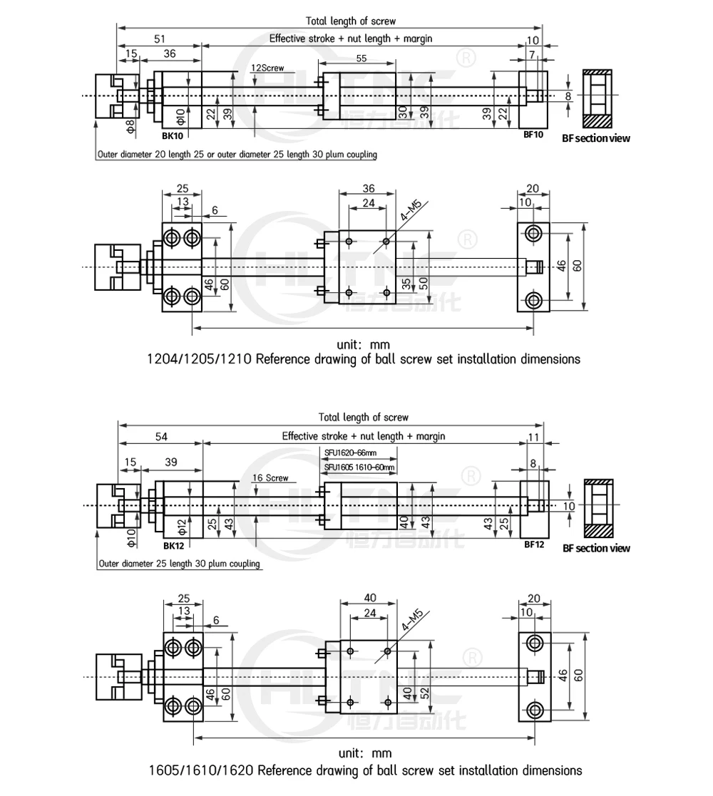 2,1000-1600 мм рекомендуемое SFU1605/SFU2005/SFU2505/SFU3205
