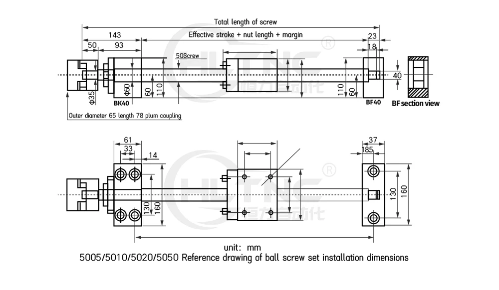 1,100-1000 мм рекомендуемое SFU1204/SFU1605/SFU2005/SFU2505/SFU3205