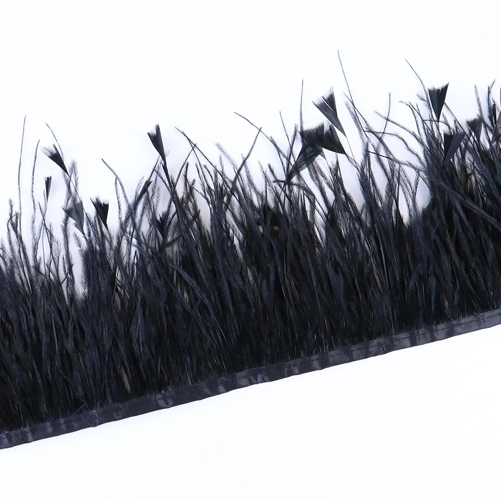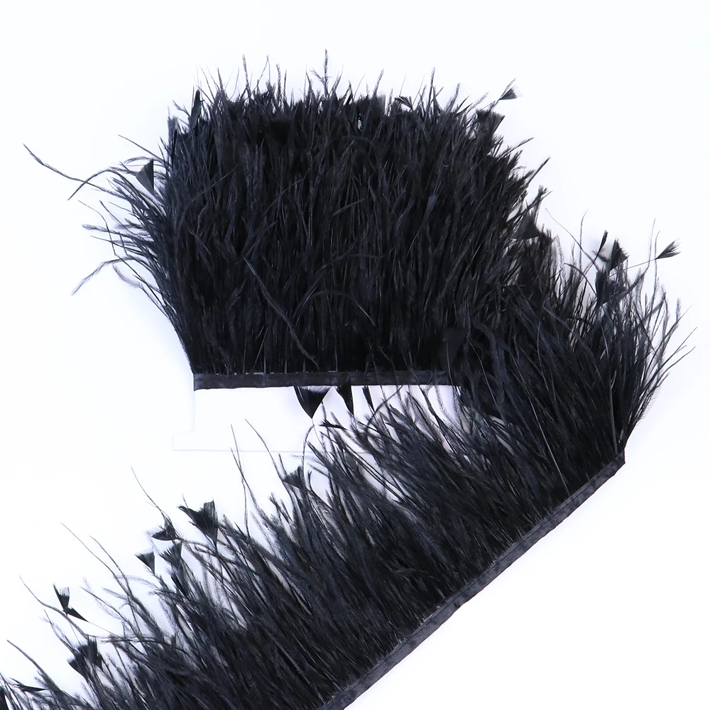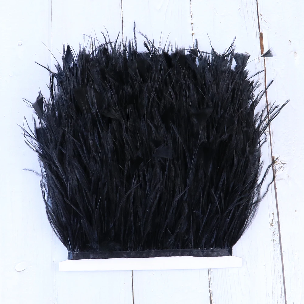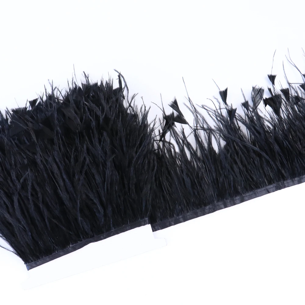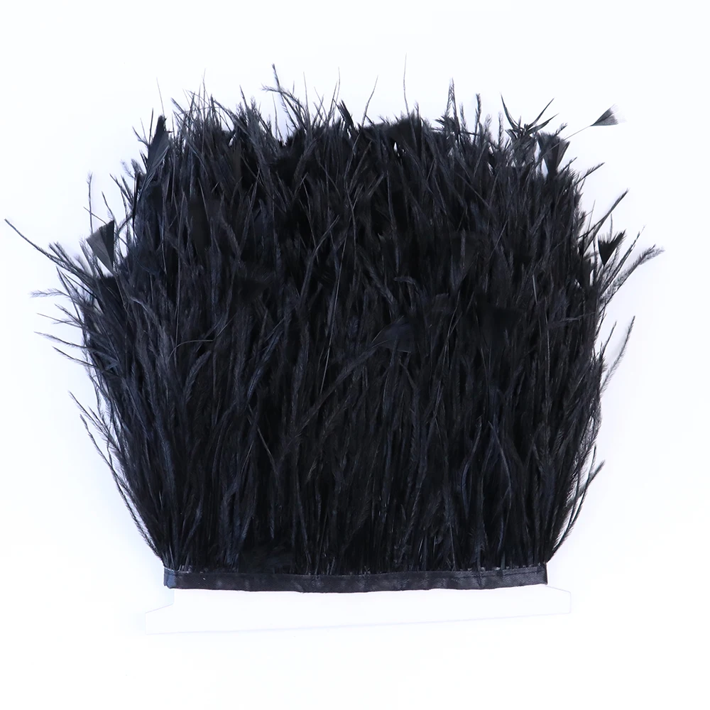 Высококачественная отделка страусиных перьев 4-6 дюймов, черные перья индейки и страуса на ленте, кисточка для платья, юбки, украшение, рукоделие