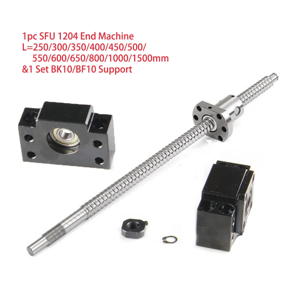 SFU1204 шариковый винт 250/300/350/400/450/500/550/600/650/800/1000 мм класс C7 с концевой обработкой + 1500 шариковая гайка + 1 комплект BK10/BF10 CNC