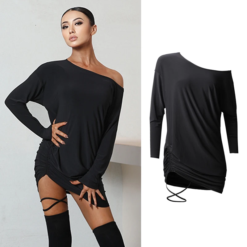 Платье женское для латинских танцев, пикантная Свободная рубашка с открытой спиной, топ для танго, сальсы, ча, ча, самбы, румбы, Одежда для танцев DNV12925