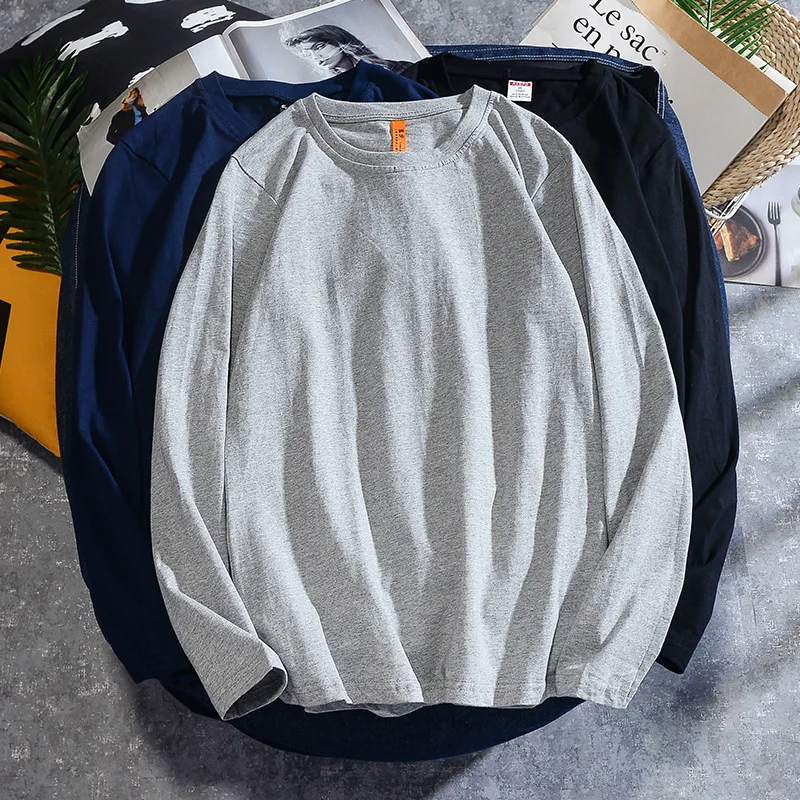 Тяжелая хлопковая рубашка с длинным рукавом и логотипом на заказ, сезон весна-лето, футболка на заказ, однотонная мужская футболка с длинным рукавом