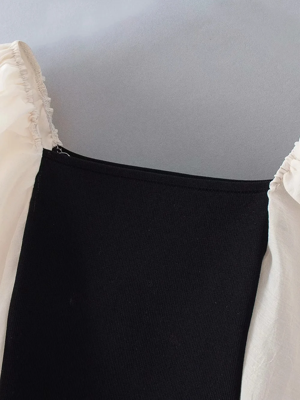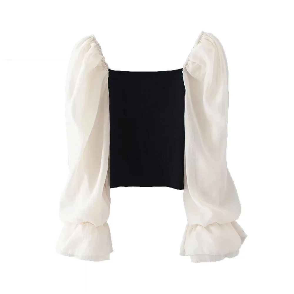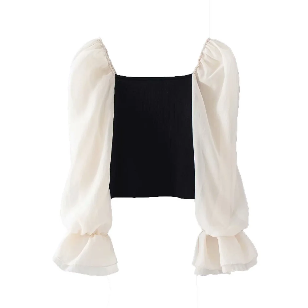 Женская блузка с квадратным вырезом, винтажная Элегантная короткая блузка из сетчатой ткани, с длинным Расклешенным рукавом, 2020