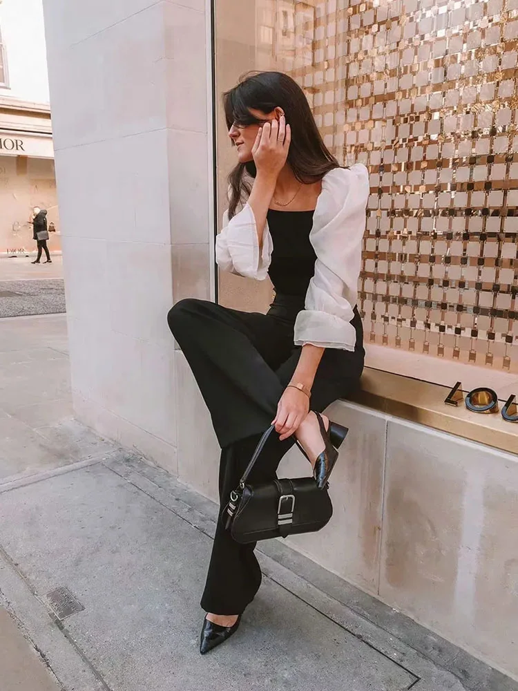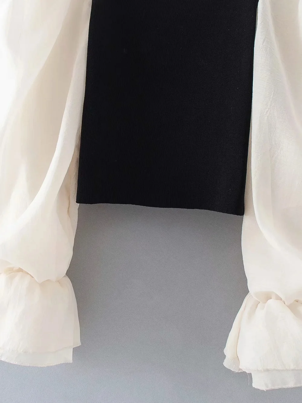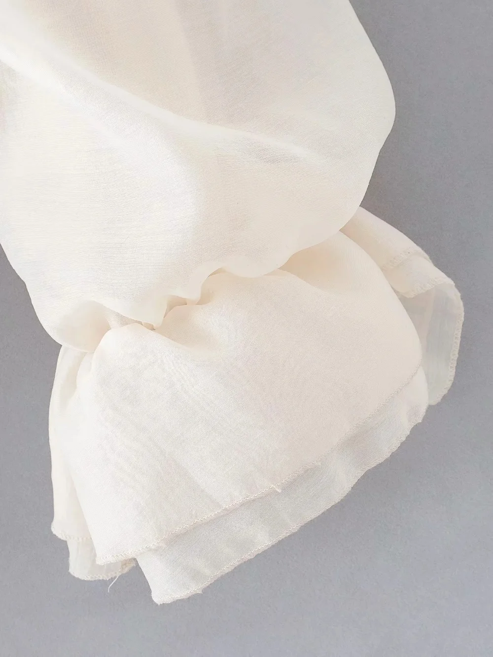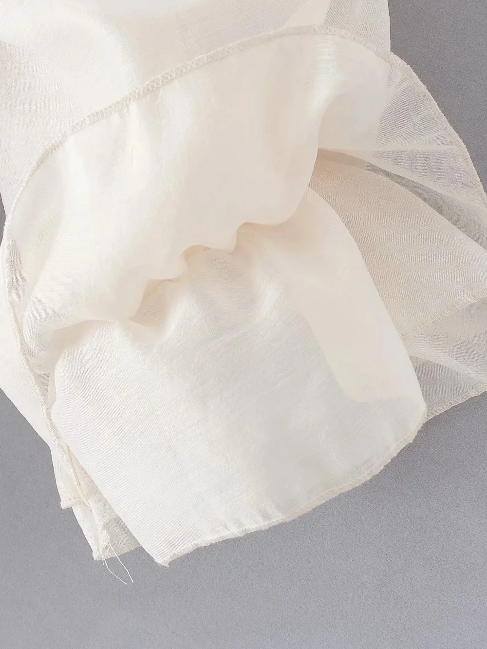 Женская блузка с квадратным вырезом, винтажная Элегантная короткая блузка из сетчатой ткани, с длинным Расклешенным рукавом, 2020