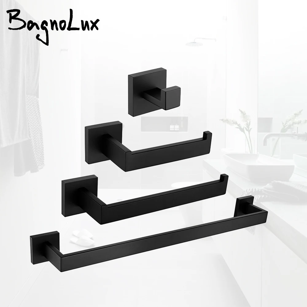 BagnoLux хромированный черный настенный крючок из нержавеющей стали, держатель для туалетной бумаги, кольцо для полотенец, аксессуары для ванной комнаты