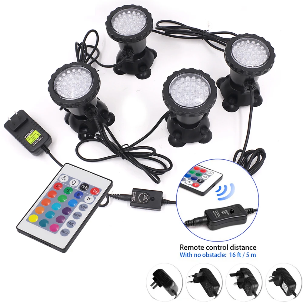 Водонепроницаемый светодиодный подводный светильник IP68 RGB, 1234, 36 светодиодов для аквариума, светодиодный прожсветильник, пульт дистанционного управления для заглушения бассейна, сада