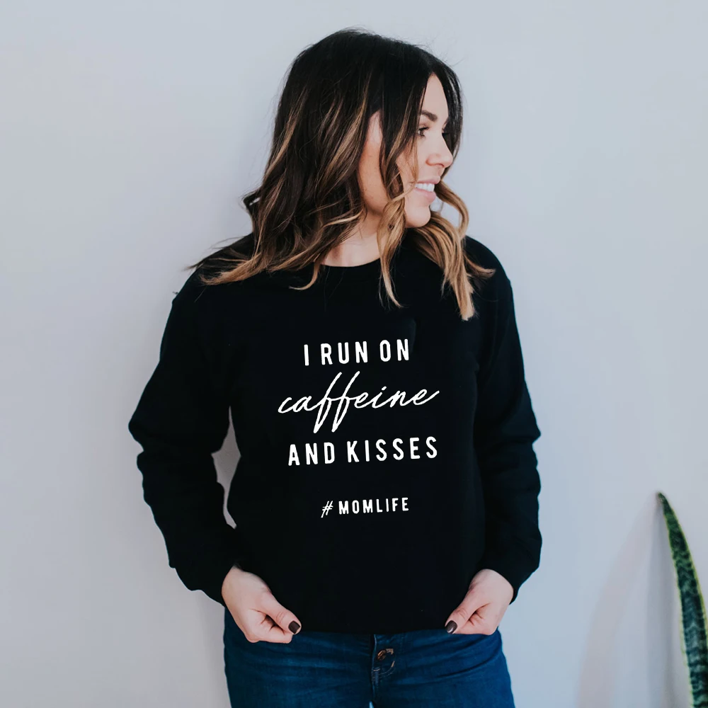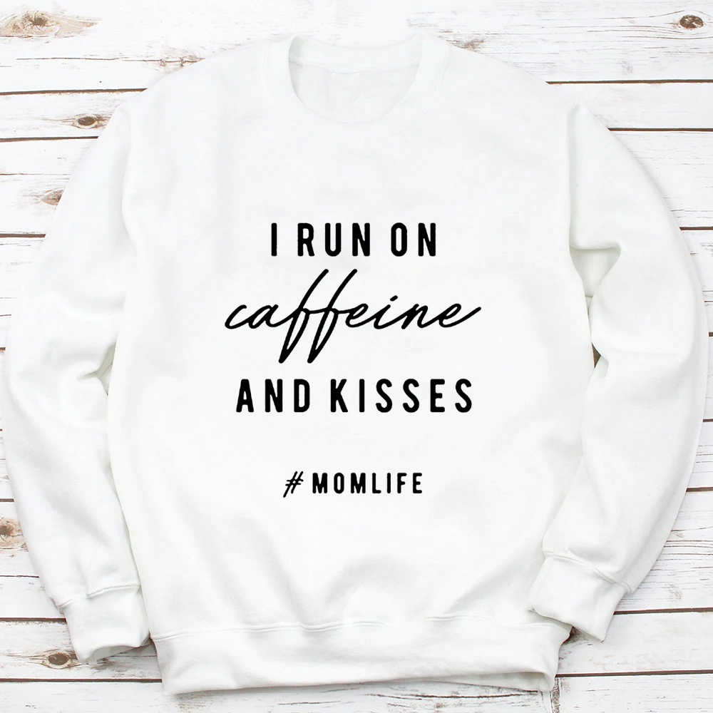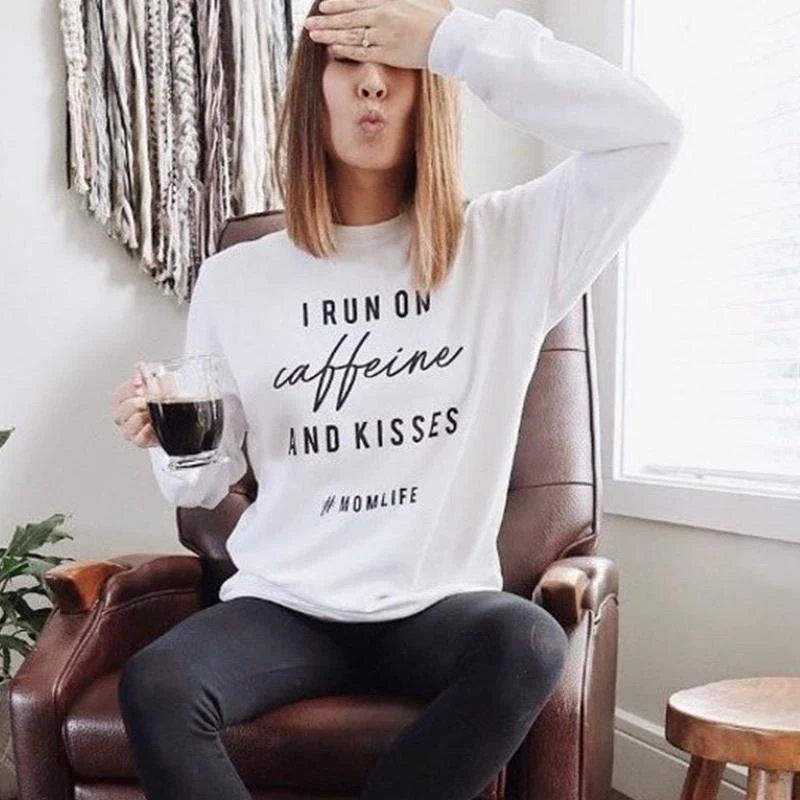 Я бегу на кофеине и поцелуях # MOMLIFE Свитшот Harajuku Графический Женский свитер с круглым вырезом Свободный Повседневный Женский пуловер