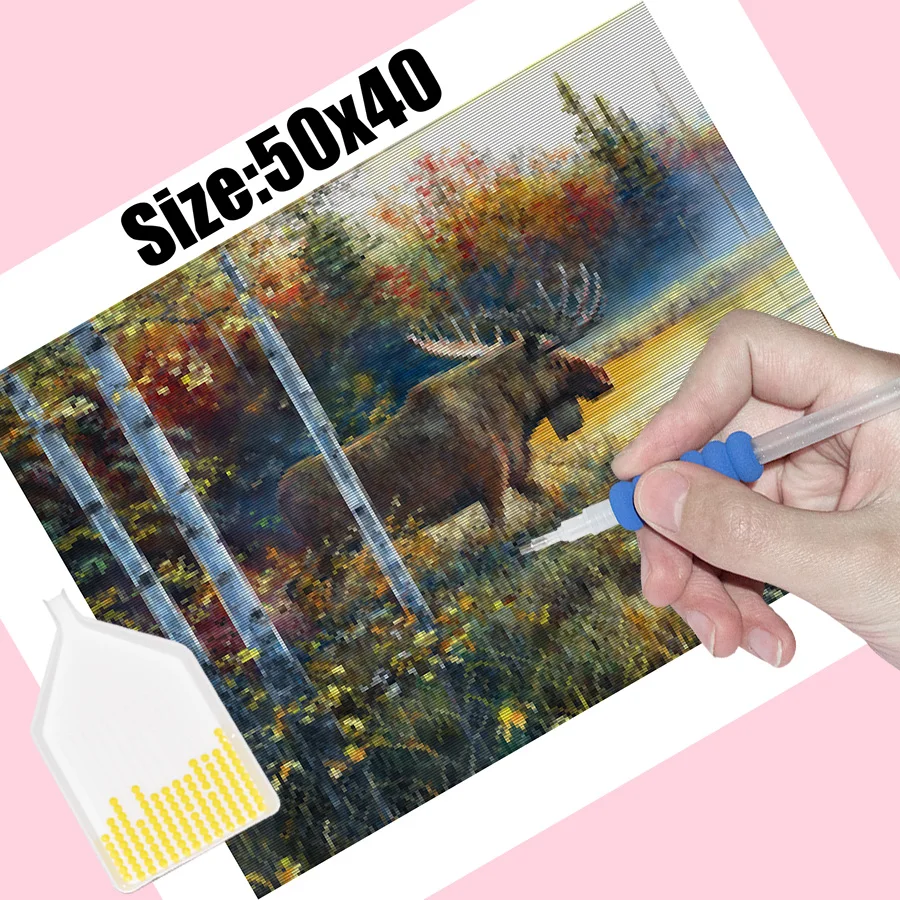 Полностью квадратнаякруглая алмазная живопись с лосями в лесу 5D, алмазная вышивка сделай сам стразы, мозаичное украшение BX0900