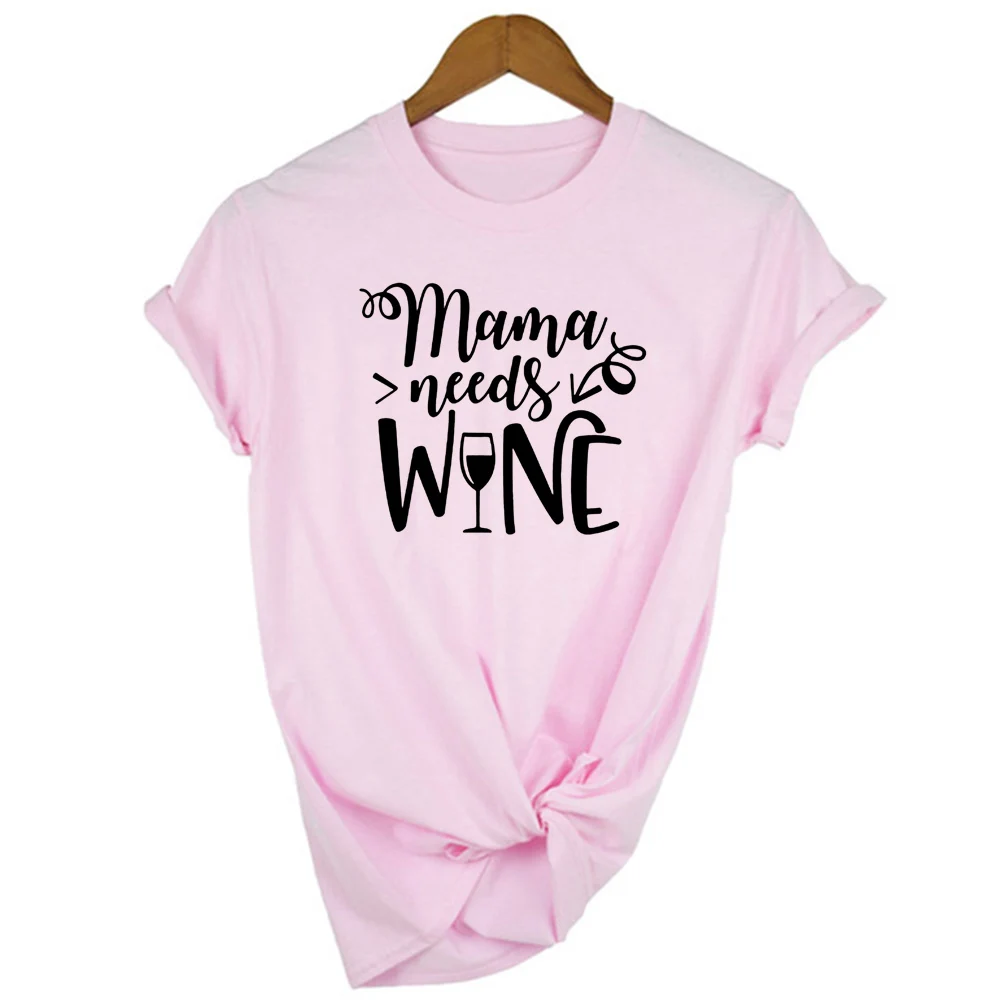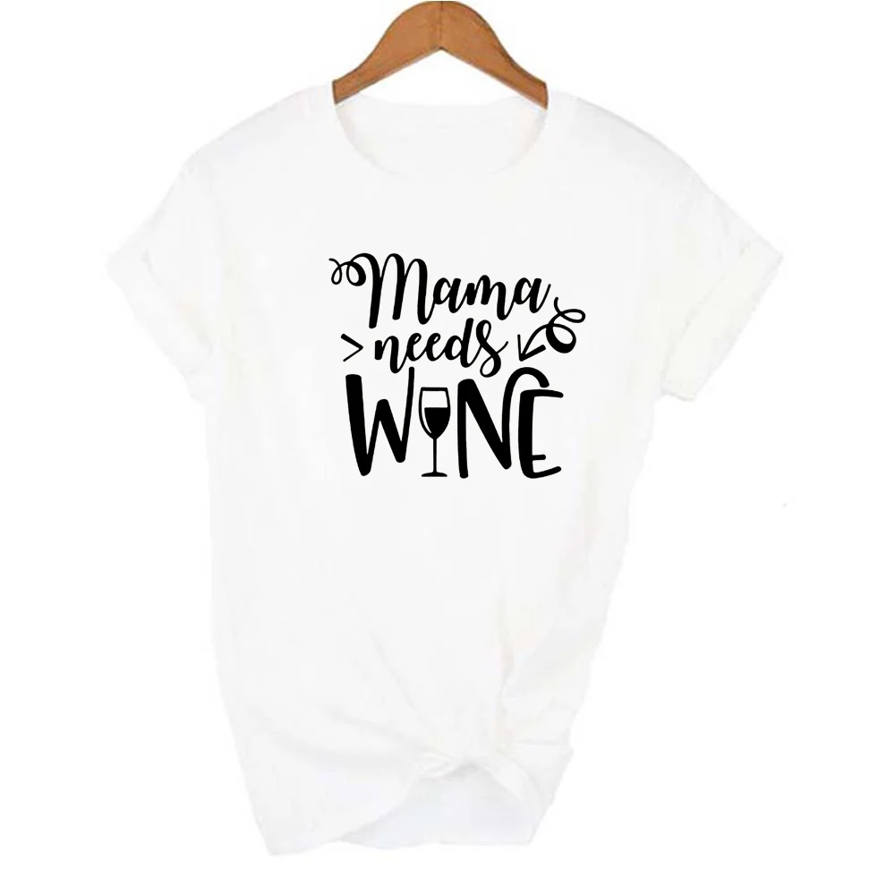 Женская футболка с принтом в виде вина Mama Needs, Повседневная футболка с круглым вырезом и короткими рукавами, винтажные топы, Camisas Mujer Tumblr