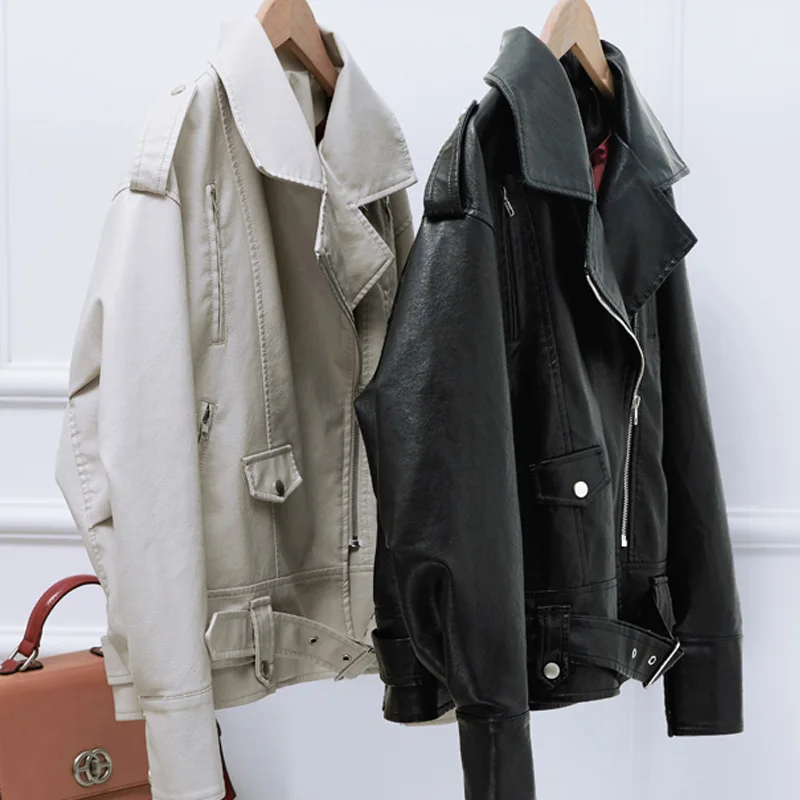 Осенняя куртка из искусственной кожи, Женская Повседневная Свободная мягкая женская мотоциклетная куртка из искусственной кожи в стиле панк, Женская Байкерская верхняя одежда на молнии