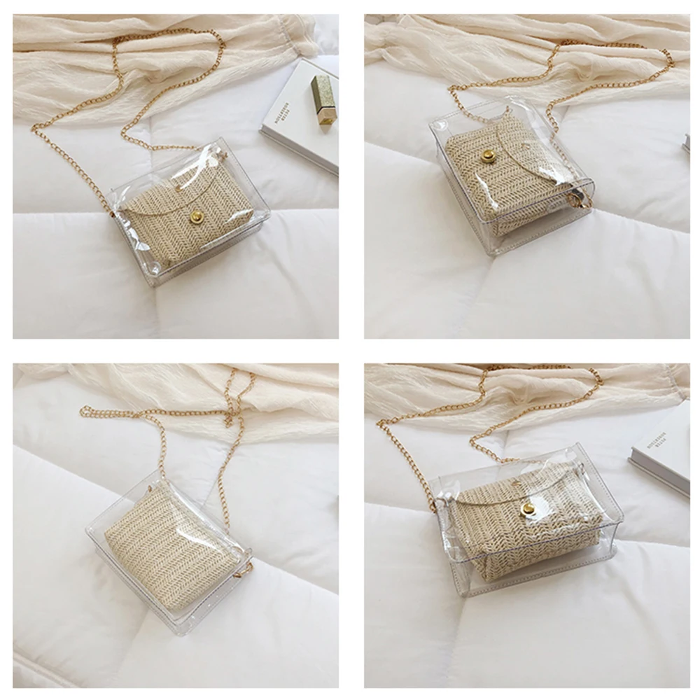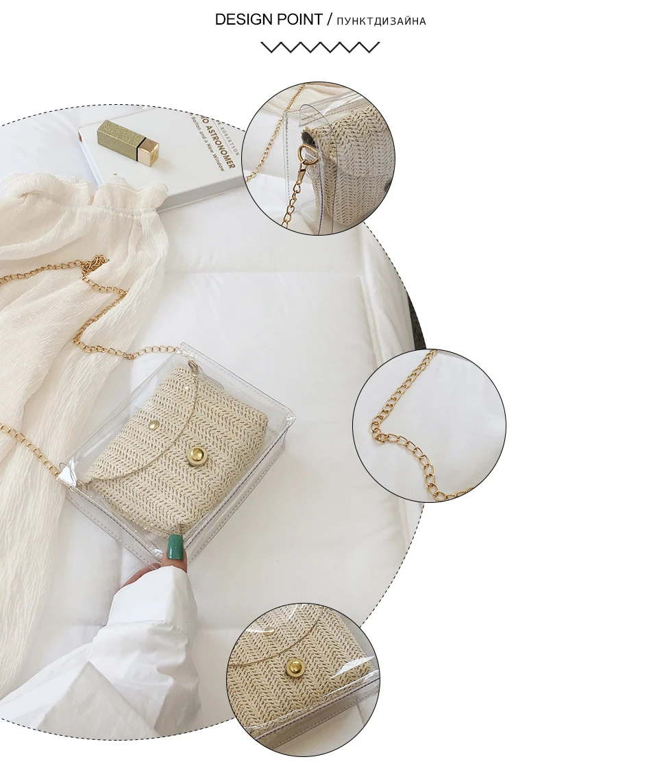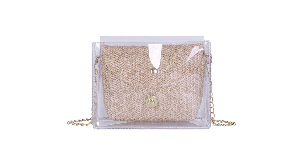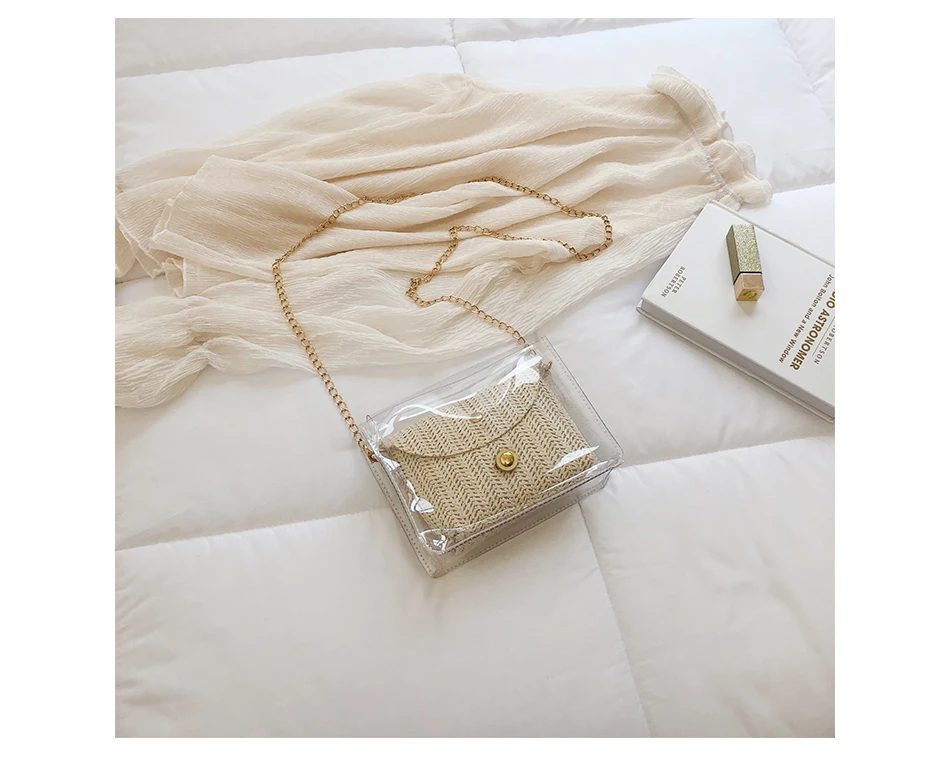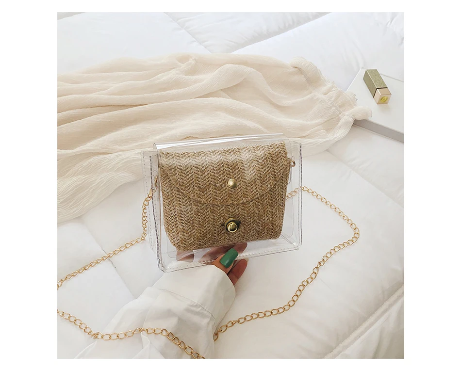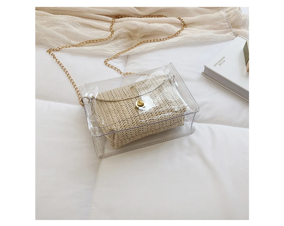 Соломенная женская сумка в богемном стиле, плетеная сумочка из желе и ротанга, повседневные прозрачные дорожные пляжные сумки через плечо, лето