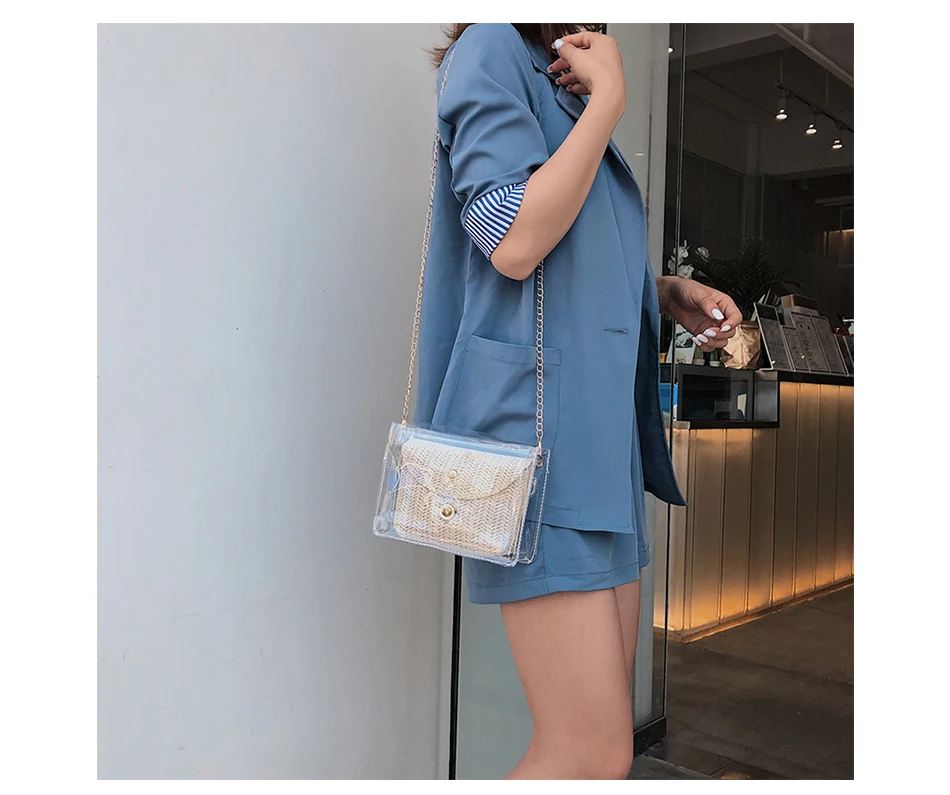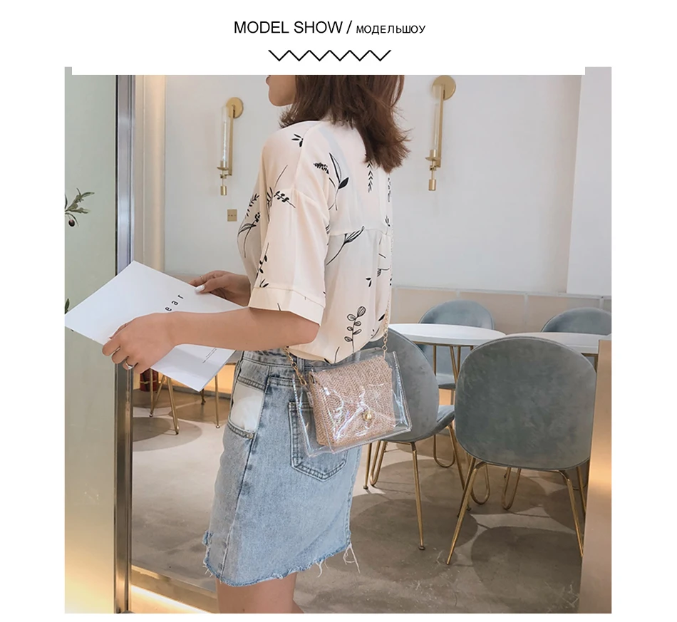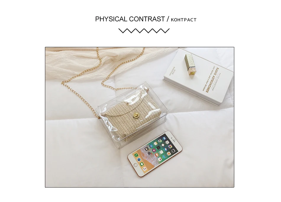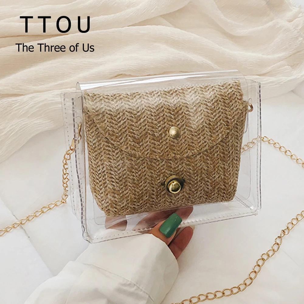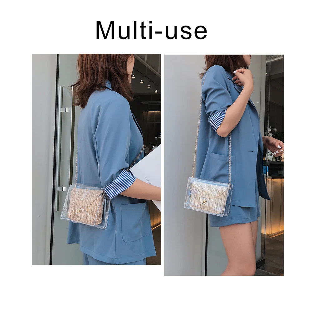 Соломенная женская сумка в богемном стиле, плетеная сумочка из желе и ротанга, повседневные прозрачные дорожные пляжные сумки через плечо, лето