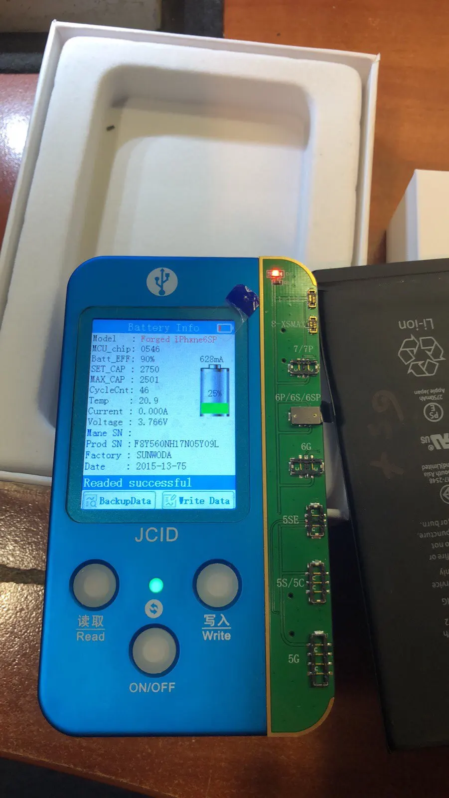 Посылка с программатором пришла довольно быстро. Всё, как заказывал: сам программатор и 4 плашки. У этой версии есть возможность работать автономно (без подключения lightning кабеля для питания) от аккумулятора от iPhone 6. Прошивка стоит от 8.11.2020. Кто-то говорил, что плашка для АКБ не видит аккумы ниже модели iPhone 7. Здесь всё ОК. Проверял на 5, 5S, SE. Ещё с похожим программатором была проблема, что он не распознавал вибрик от iPhone 7. С этим же программатором всё заработало. По копированию TrueTone - всё чётко