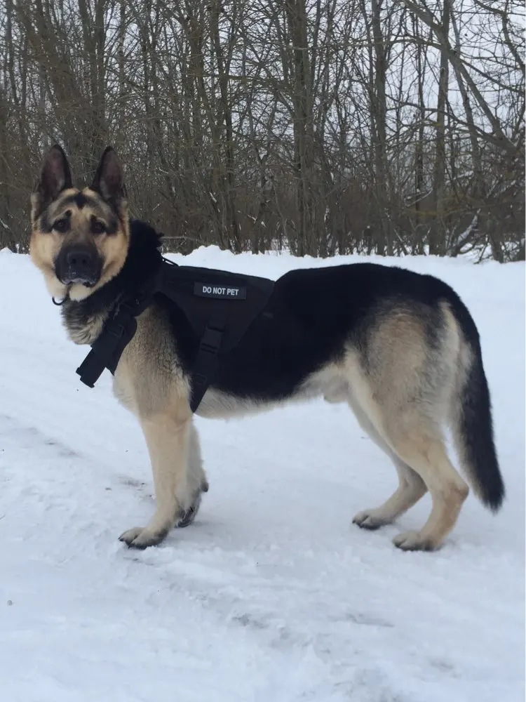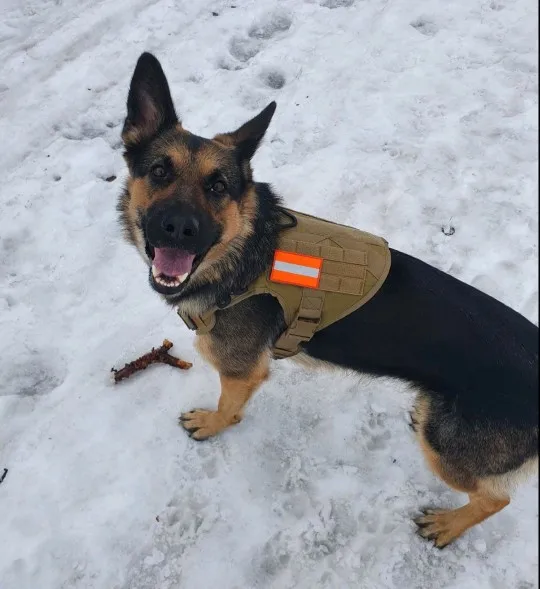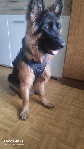 Шлейка очень хорошая,выглядит достойно. Мягкая и одновременно крепкая. Надевать легко .Заказом довольны.XL размер брали на крупную швейцарскую овчарку. Подошла, есть запас.