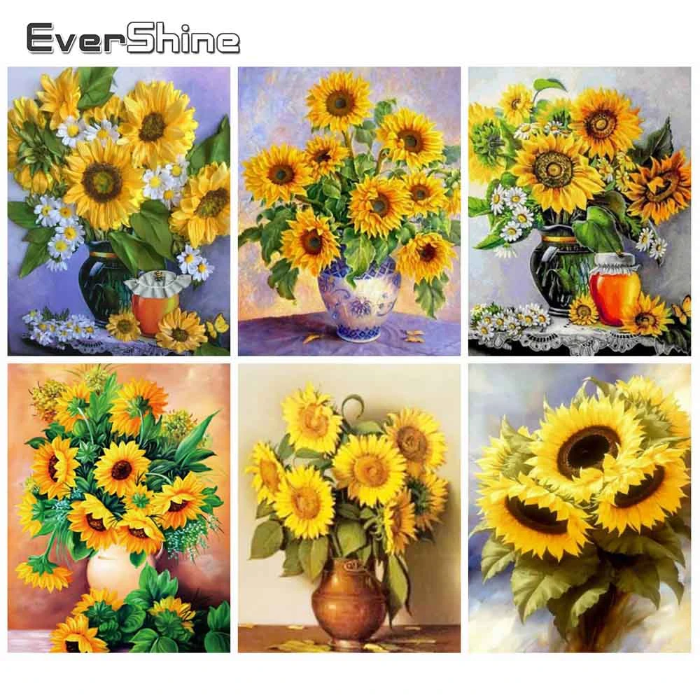 EverShine DIY Алмазная вышивка Подсолнухи Картина Стразы Алмазная картина полностью квадратные цветы кристальная мозаика домашний декор