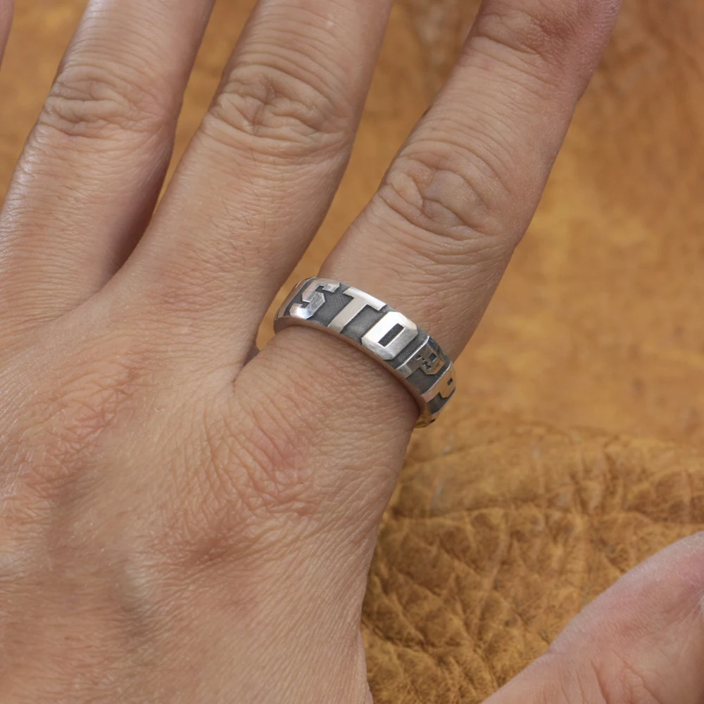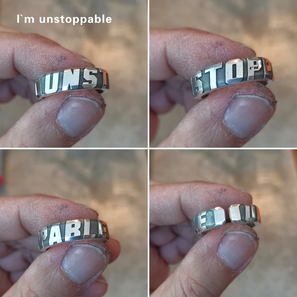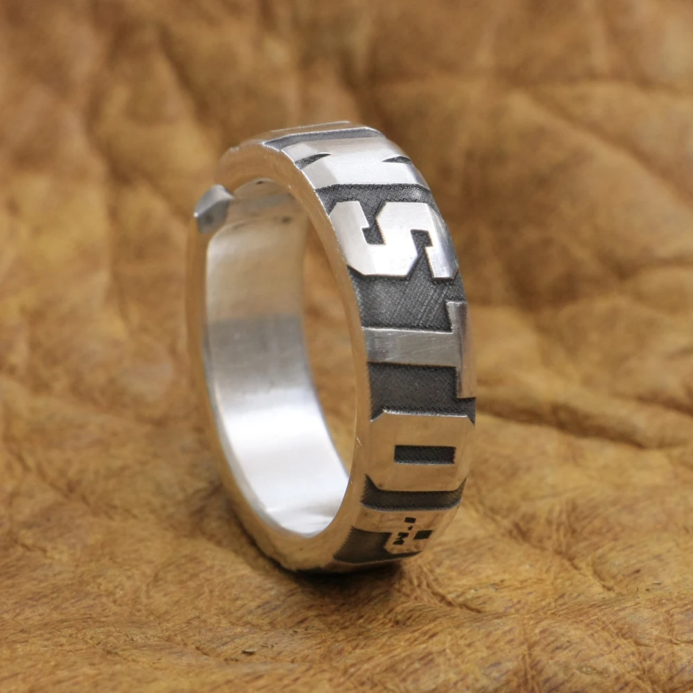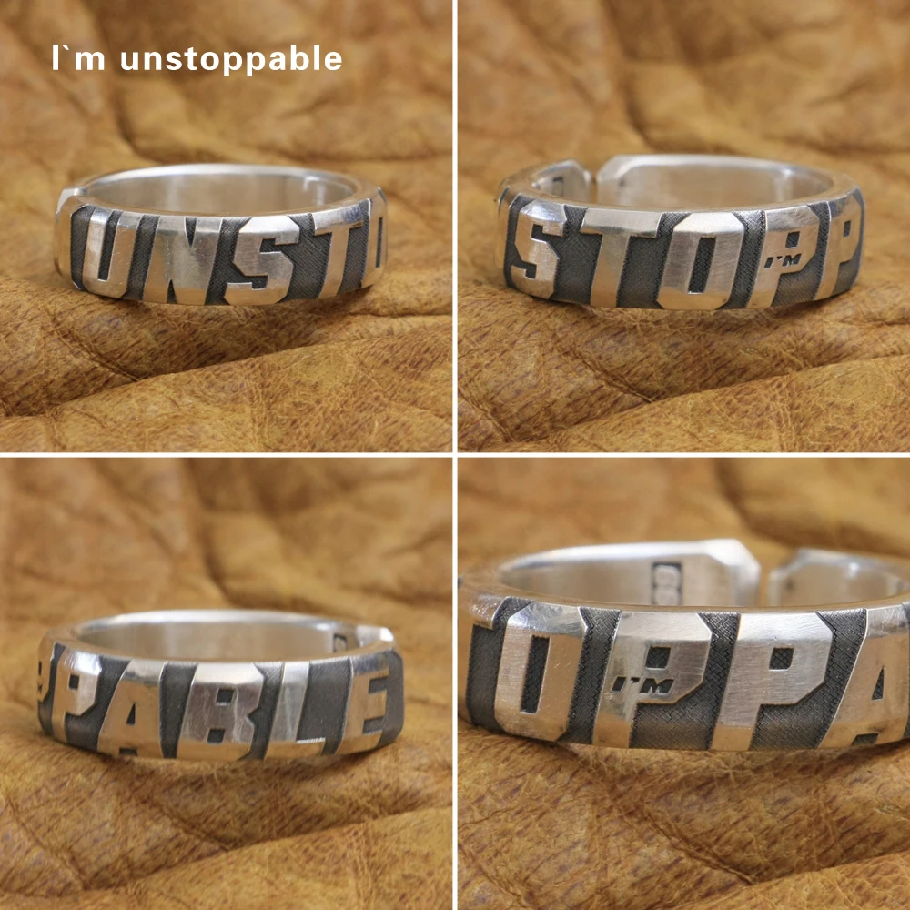 999 Чистое серебро гравированное кольцо с надписью I'M непробиваемое мужское байкерское панк кольцо 9Y024