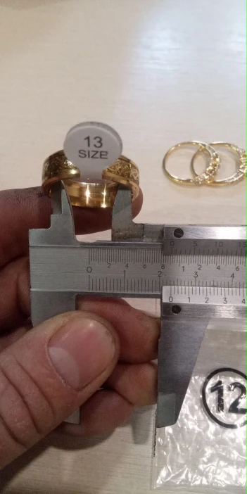 Размер кольца не соответствует размерной таблице. Заказывал 12 размер 67мм. В живую кольцо имеет 22мм в диаметре. По формуле длине окружности, получается 69мм. Кольцо лежит на пальце не плотно.