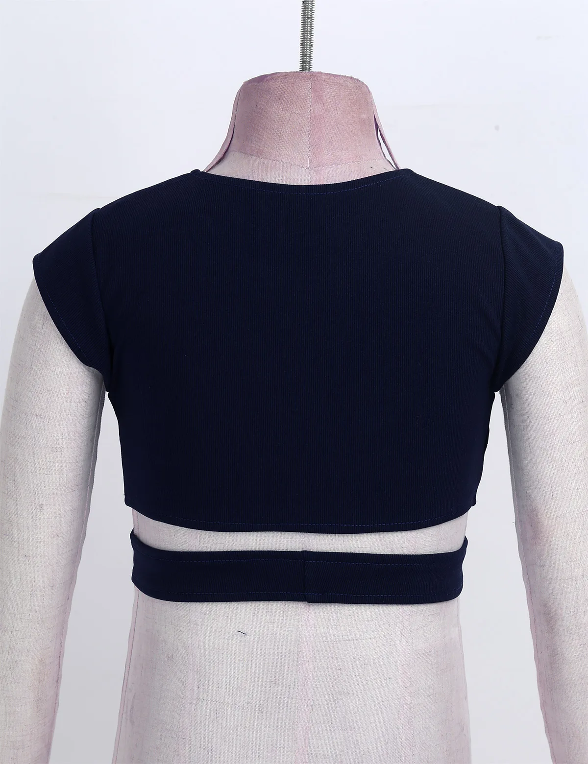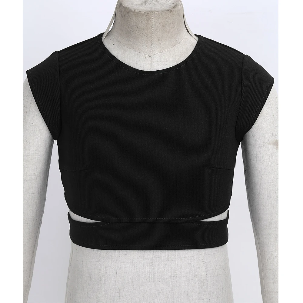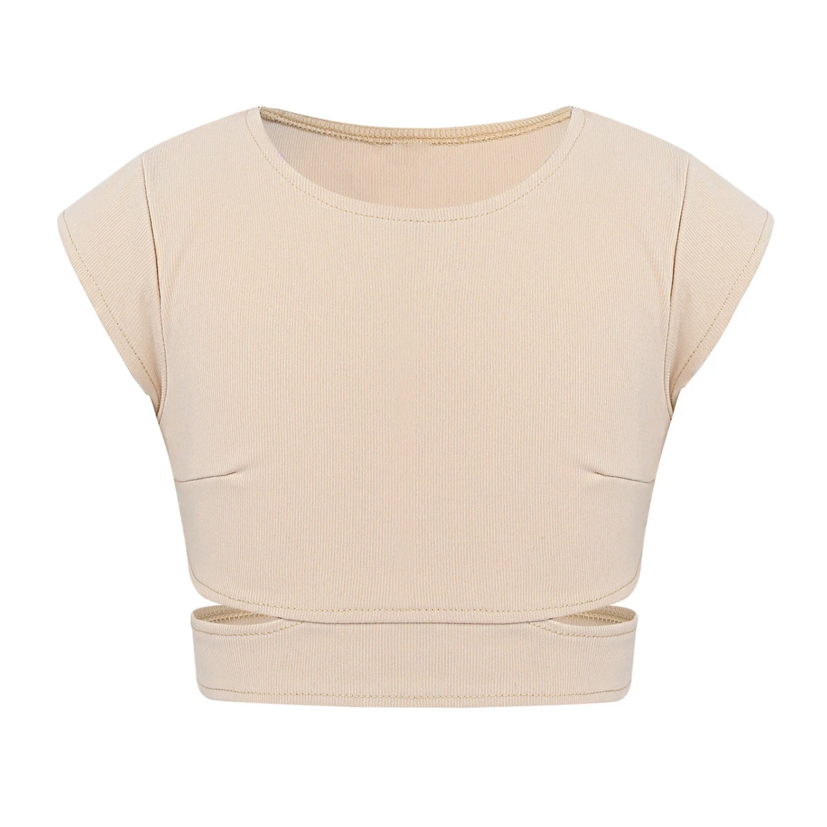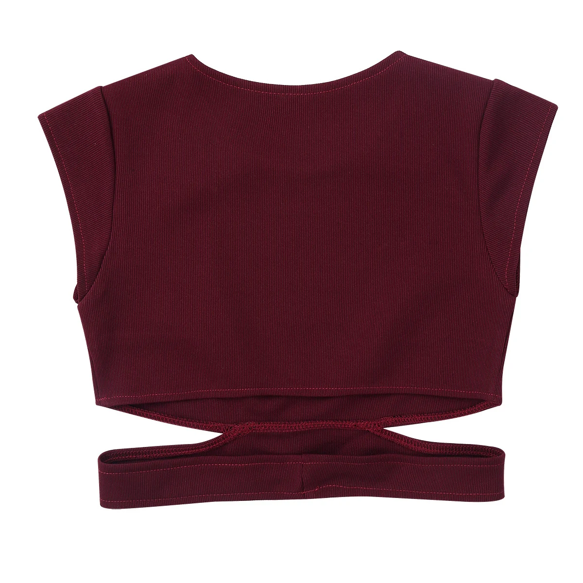 Детские танцевальные укороченные топы для девочек, эластичные майки с вырезом на талии и рукавами-крылышками, бюстгальтер, топы для балета, танцев, выступлений, тренировок