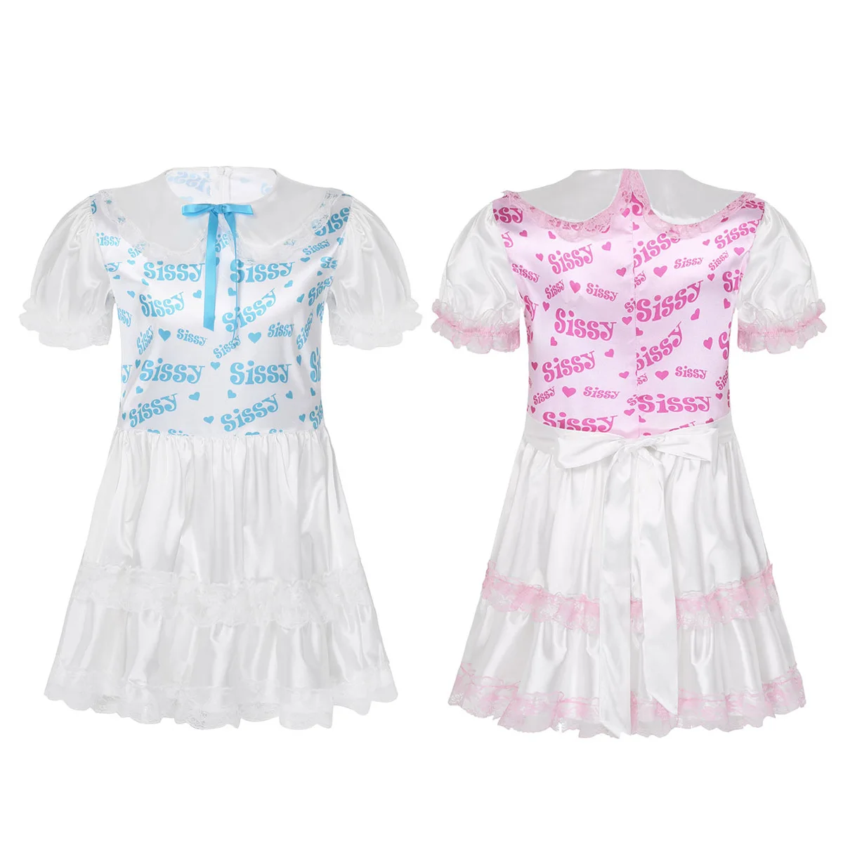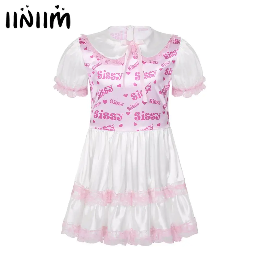 Особенности: Атласное кружевное платье с оборками для взрослых и мужчин; Костюм для взрослых с крестиком; Скрытая застежка-молния сзади. Кукольный воротник и короткие пышные рукава, отделанные изящным кружевом, с принтом «sissy» сверху, с завязками сбоку сзади. Только одно многослойное платье с двойным гофрированным кружевом на подоле. Высококачественный и приятный для кожи атласный материал, дарит ощущение гладкости. Отлично подходит для кроссворда, сна, романтической ночи, костюмированной вечеринки, тематических вечеринок, ролевых игр и т. д. Перед покупкой проверьте таблицу размеров, рекомендуется ручная стирка.